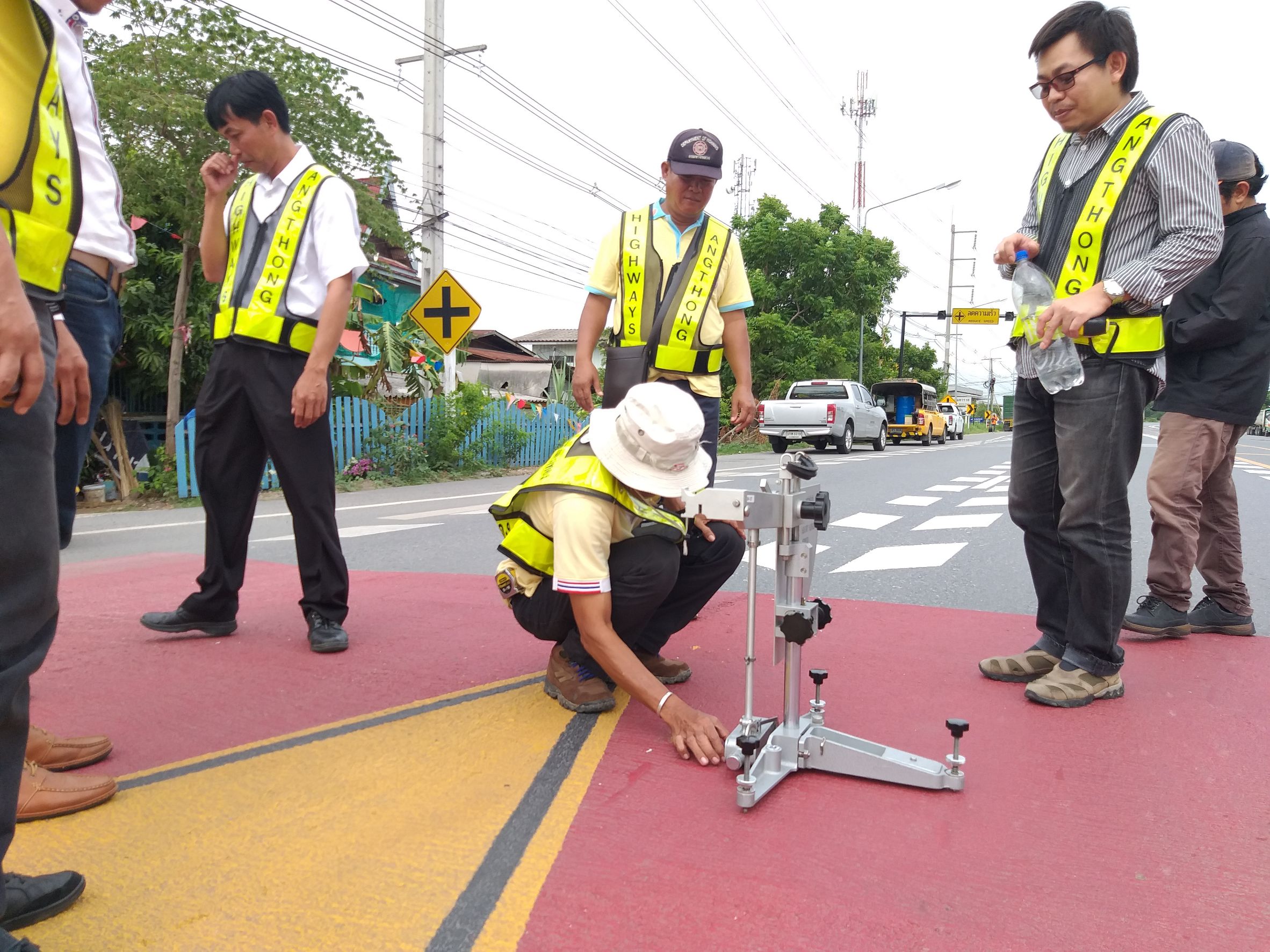 การตรวจรับงานจ้างเหมาทำการตีเครื่องหมายจราจรบนผิวทาง
