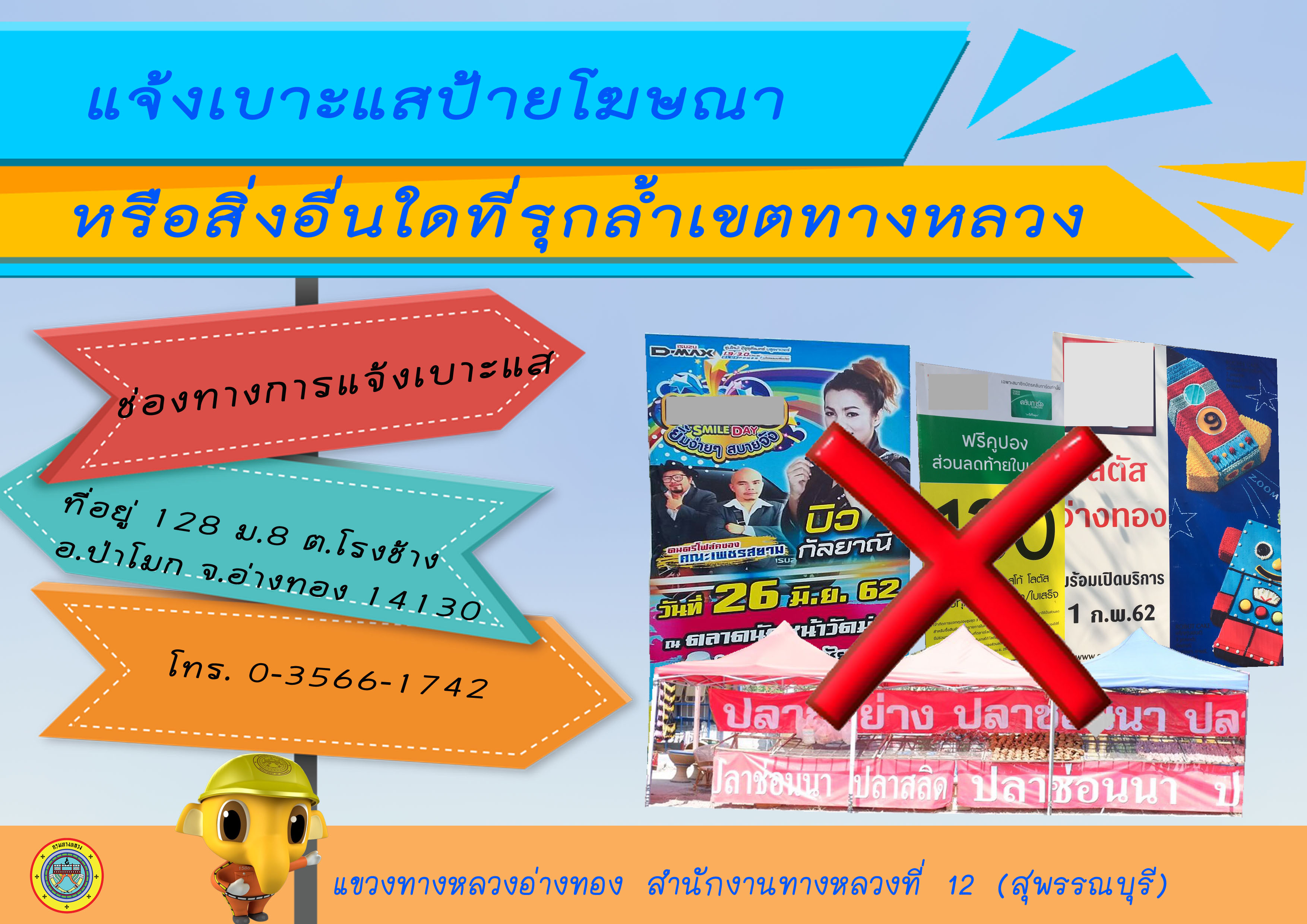การรับแจ้งเบาะแสป้ายโฆษณาหรือสิ่งอื่นใดที่รุกล้ำทางหลวงที่ไม่ชอบด้วยกฎหมาย