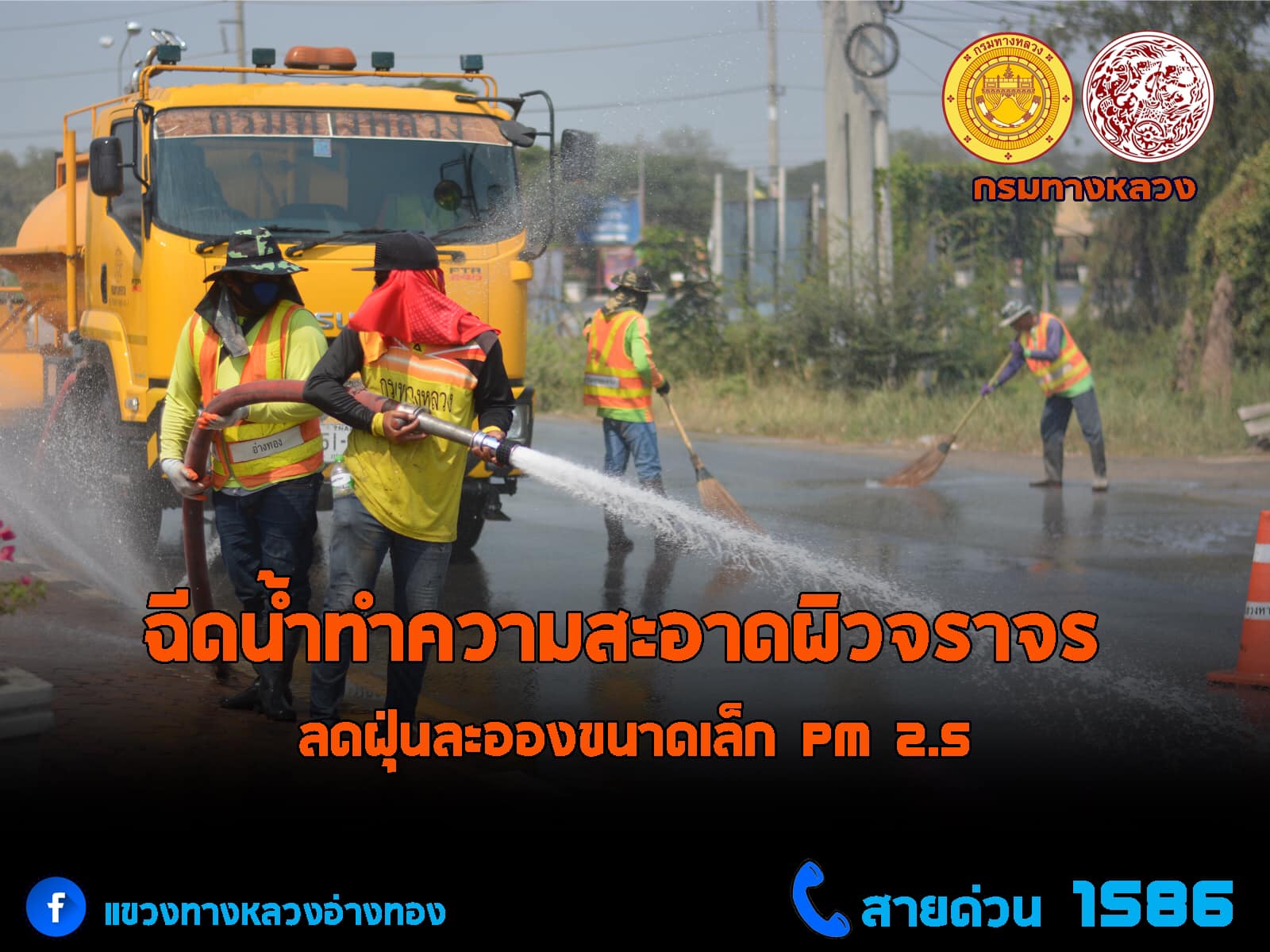 กรมทางหลวง ห่วงใยสุขภาพพี่น้องประชาชน ร่วมลดฝุ่นละอองขนาดเล็ก PM 2.5