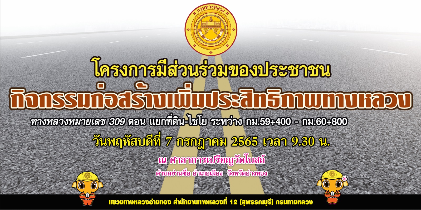โครงการ การมีส่วนร่วมของประชาชน กิจกรรมก่อสร้างเพิ่มประสิทธิภาพทางหลวง ในทางหลวงหมายเลข 309 ตอน แยกที่ดิน - ไชโย ระหว่าง กม.59+400 - กม.60+800