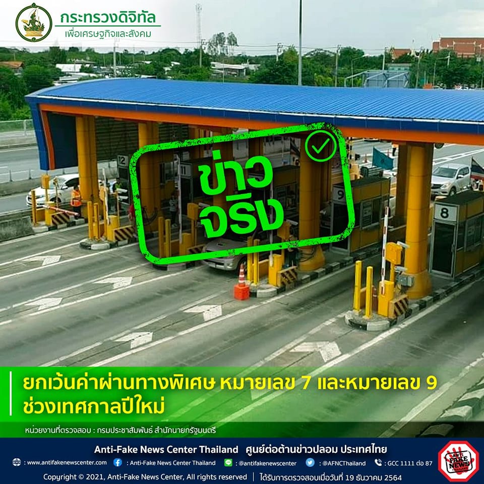 ยกเว้นค่าผ่านทางพิเศษ หมายเลข 7 และหมายเลข 9 ช่วงเทศกาลปีใหม่