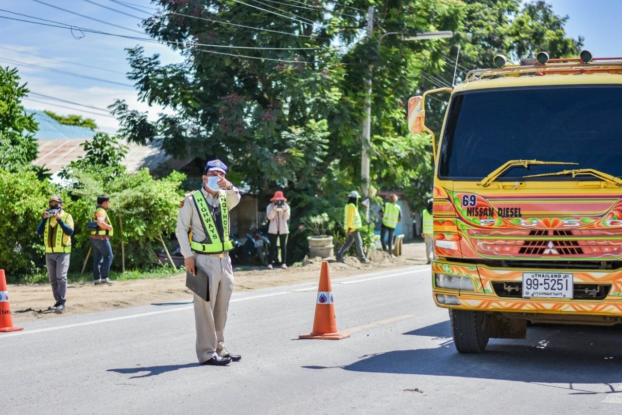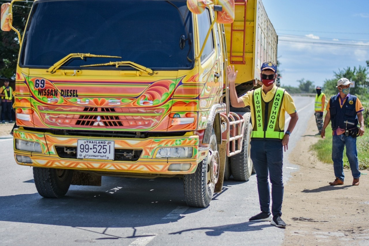 นายณัฐพร เนียมกลิ่น ผู้อำนวยการแขวงทางหลวงอ่างทอง พร้อมข้าราชการ เจ้าหน้าที่ในสังกัด ร่วมบูรณาการ กับ แขวงทางหลวงชนบทอ่างทอง , ขนส่งจังหวัดอ่างทอง , กอ.รมน.อ่างทอง , สภ.ป่าโมก และ อำเภอป่าโมก ตรวจสอบรถบรรทุกน้ำหนักเกินกว่ากฎหมายกำหนด บังคับใช้กฎหมาย ไม่มีผ่อนผัน เพื่อป้องกันถนนชำรุดเสียหาย ในทางหลวงหมายเลข 3501 ตอน อ่างทอง - บางหลวงโดด ที่กม.19+300 RT