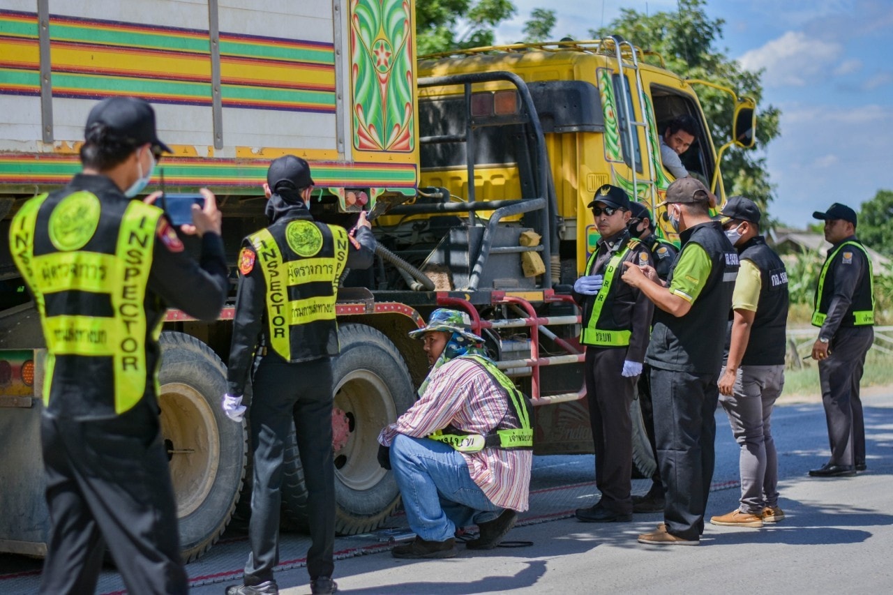ตรวจสอบรถบรรทุกน้ำหนักเกินกว่ากฎหมายกำหนด ทางหลวงหมายเลข 3501 ตอน อ่างทอง - บางหลวงโดด ที่กม.19+300 RT