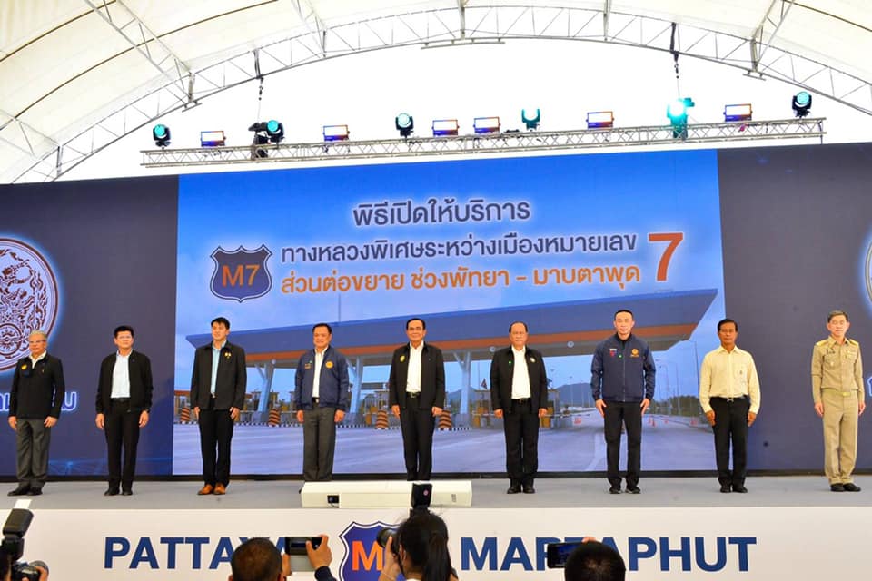พล.อ.ประยุทธ์ จันทร์โอชา นายกรัฐมนตรี และรัฐมนตรีว่าการกระทรวงกลาโหม เป็นประธานในพิธีเปิดให้บริการทางหลวงพิเศษระหว่างเมืองหมายเลข 7 ส่วนต่อขยาย ช่วงพัทยา-มาบตาพุด ครบทุกด่านอย่างเป็นทางการ โดยมีนายสราวุธ ทรงศิวิไล อธิบดีกรมทางหลวง กล่าวรายงาน พร้อมผู้บริหารกรมทางหลวงเข้าร่วมงานฯ ณ ด่านเก็บค่าธรรมเนียมผ่านทางอู่ตะเภา อ.บ้านฉาง จ.ระยอง