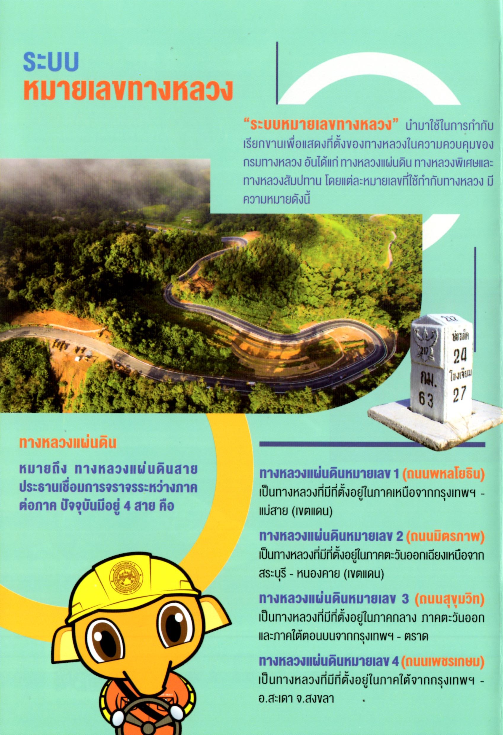 ระบบหมายเลขทางหลวง นำมาใช้ในการกำกับเรียกขาน เพื่อแสดงที่ตั้งของทางหลวงในความควบคุมของกรมทางหลวง อันได้แก่ ทางหลวงแผ่นดิน ทางหลวงพิเศษและทางหลวงสัมปทาน โดยแต่ละหมายเลขที่ใช้กำกับทางหลวง