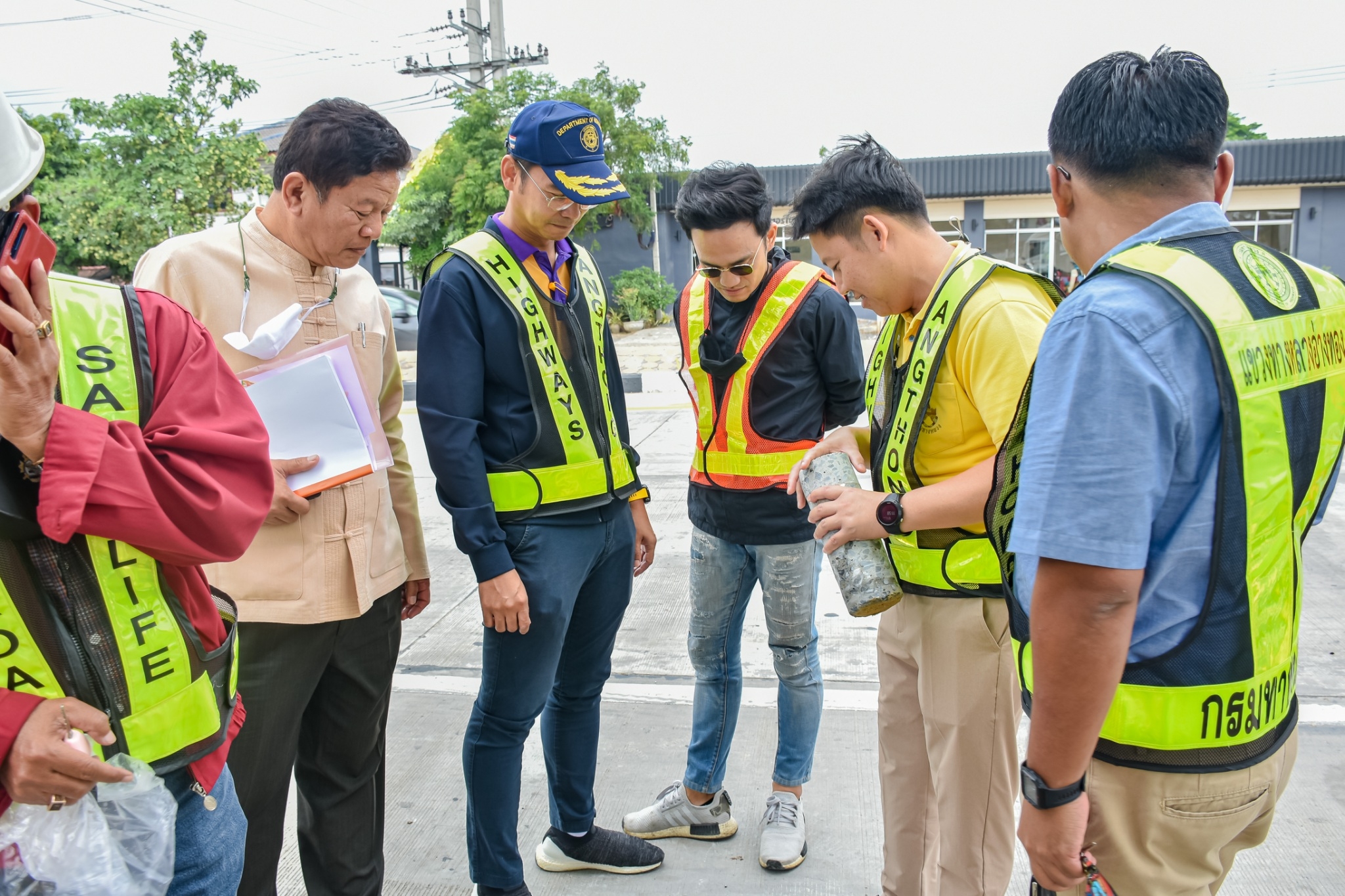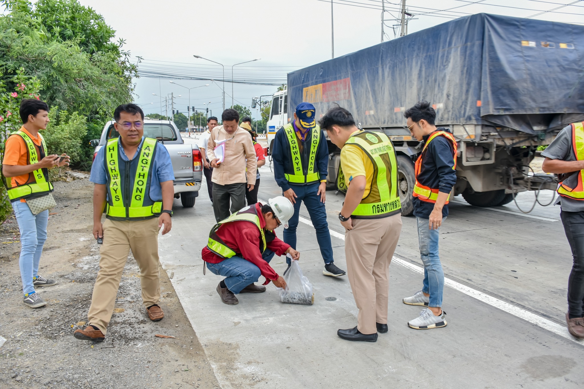 นายจตุพล เทพมังกร รส.ทล.12.1 ประทานคณะกรรมการตรวจรับพัสดุ พร้อมด้วย นายณัฐพร เนียมกลิ่น ผอ.ขท.อ่างทอง (กรรมการ) และคณะกรรมการการตรวจรับพัสดุร่วมตรวจรับงาน งานจ้างเหมาโครงการยกระดับความปลอดภัยบริเวณทางแยกขนาดใหญ่ ในทางหลวงหมายเลข 33 ตอน นาคู - ป่าโมก ระหว่าง กม.26+000 - กม.26+674 (บริเวณแยกหน้าโคก)