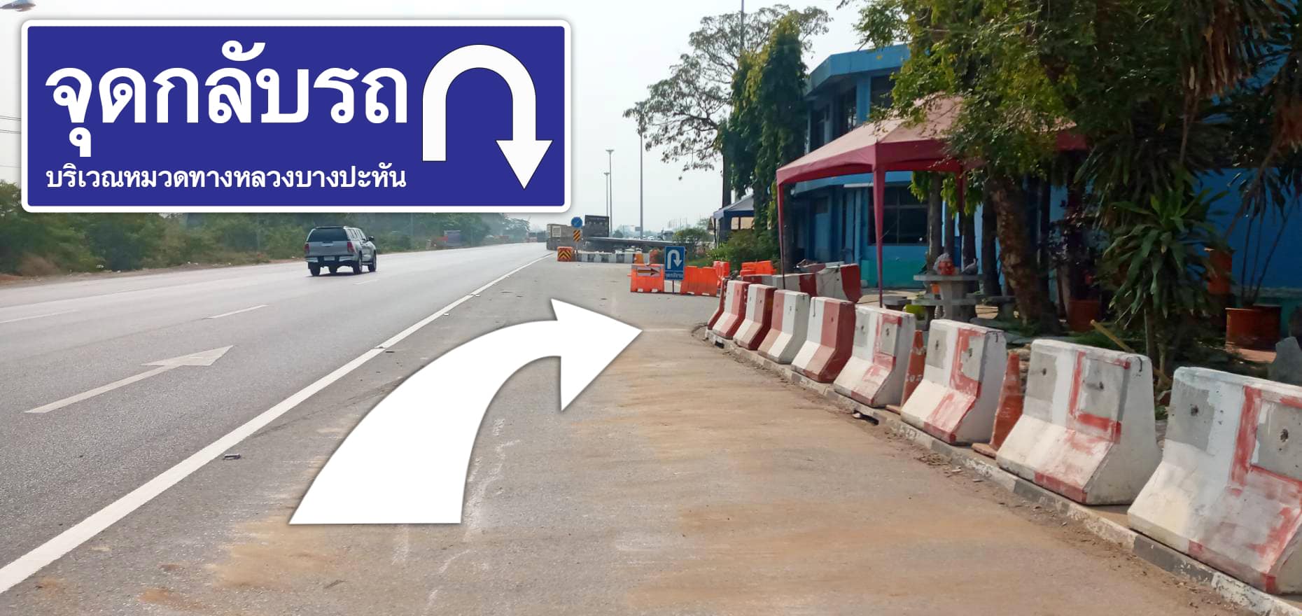 ที่ กม.42+650 เพื่อทำการปรับปรุงจุดกลับรถใหม่ และดำเนินการเปิดจุดกลับรถชั่วคราว ที่กม. 42+400 (บริเวณสำนักงานหมวดฯบางปะหัน) ให้แก่ผู้ใช้เส้นทาง สามารถกลับได้เฉพาะรถเล็ก ความสูงไม่เกิน 2.20 เมตร