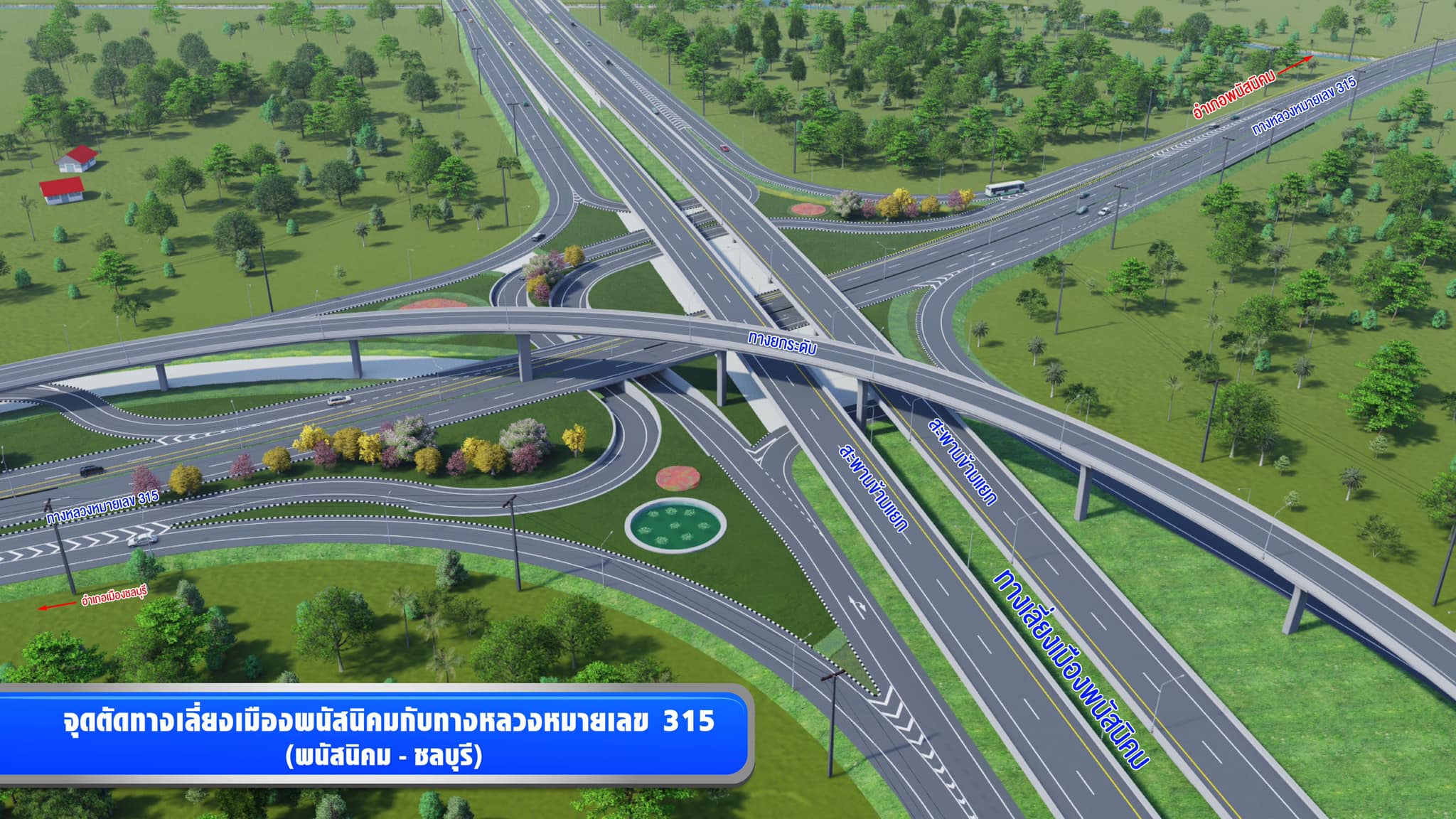 กรมทางหลวงออกแบบทางแนวใหม่สายเลี่ยงเมืองพนัสนิคม จ.ชลบุรี ช่วยบรรเทาปัญหาการจราจร พัฒนาโครงข่ายระบบคมนาคมขนส่งเส้นทางภูมิภาคและประตูการค้าระหว่างประเทศ