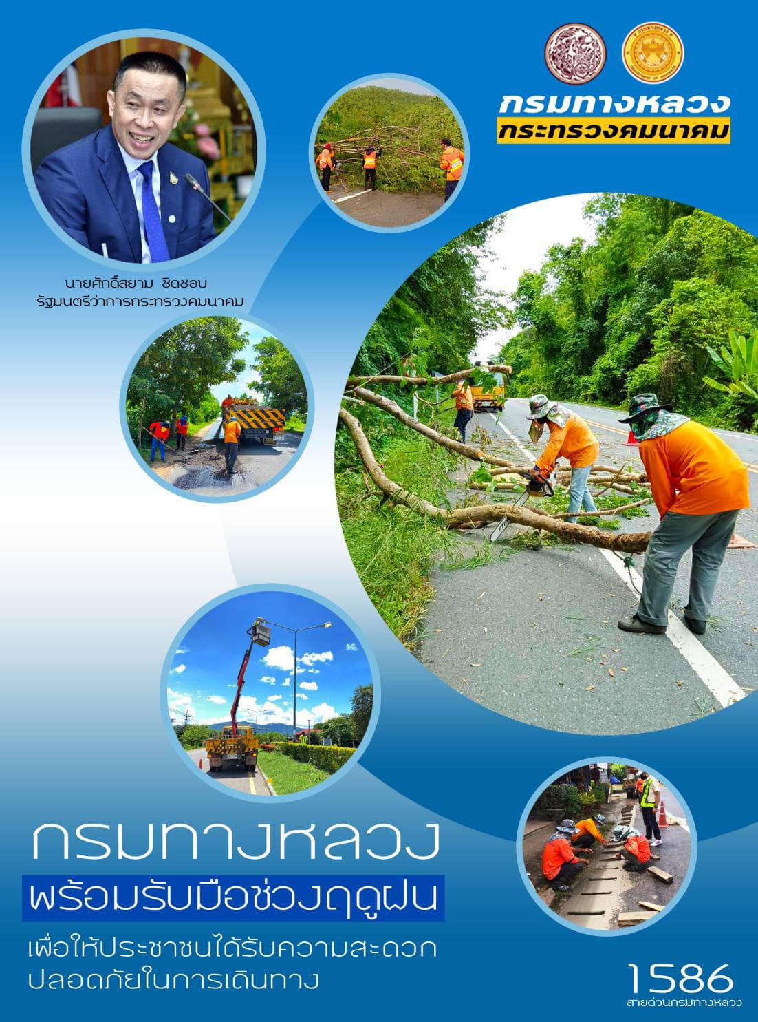 ทั้งนี้ ขอความร่วมมือประชาชนผู้ใช้เส้นทางในช่วงฤดูฝนนี้ขอให้ระมัดระวังการใช้รถใช้ถนนเป็นพิเศษ เพื่อความปลอดภัยและหลีกเลี่ยงเส้นทางที่คาดว่าจะเกิดความสุ่มเสี่ยง พร้อมขอให้ปฏิบัติตามป้ายเตือน ป้ายแนะนำและคำแนะนำของเจ้าหน้าที่อย่างเคร่งครัด และหากประชาชนต้องการสอบถามสภาพเส้นทาง สภาพการจราจร หรือต้องการความช่วยเหลือสามารถติดต่อได้ที่สำนักงานทางหลวง แขวงทางหลวง หมวดทางหลวงในพื้นที่ และสายด่วนกรมทางหลวง 1586 (โทรฟรีทุกเครือข่ายตลอด 24 ชั่วโมง)