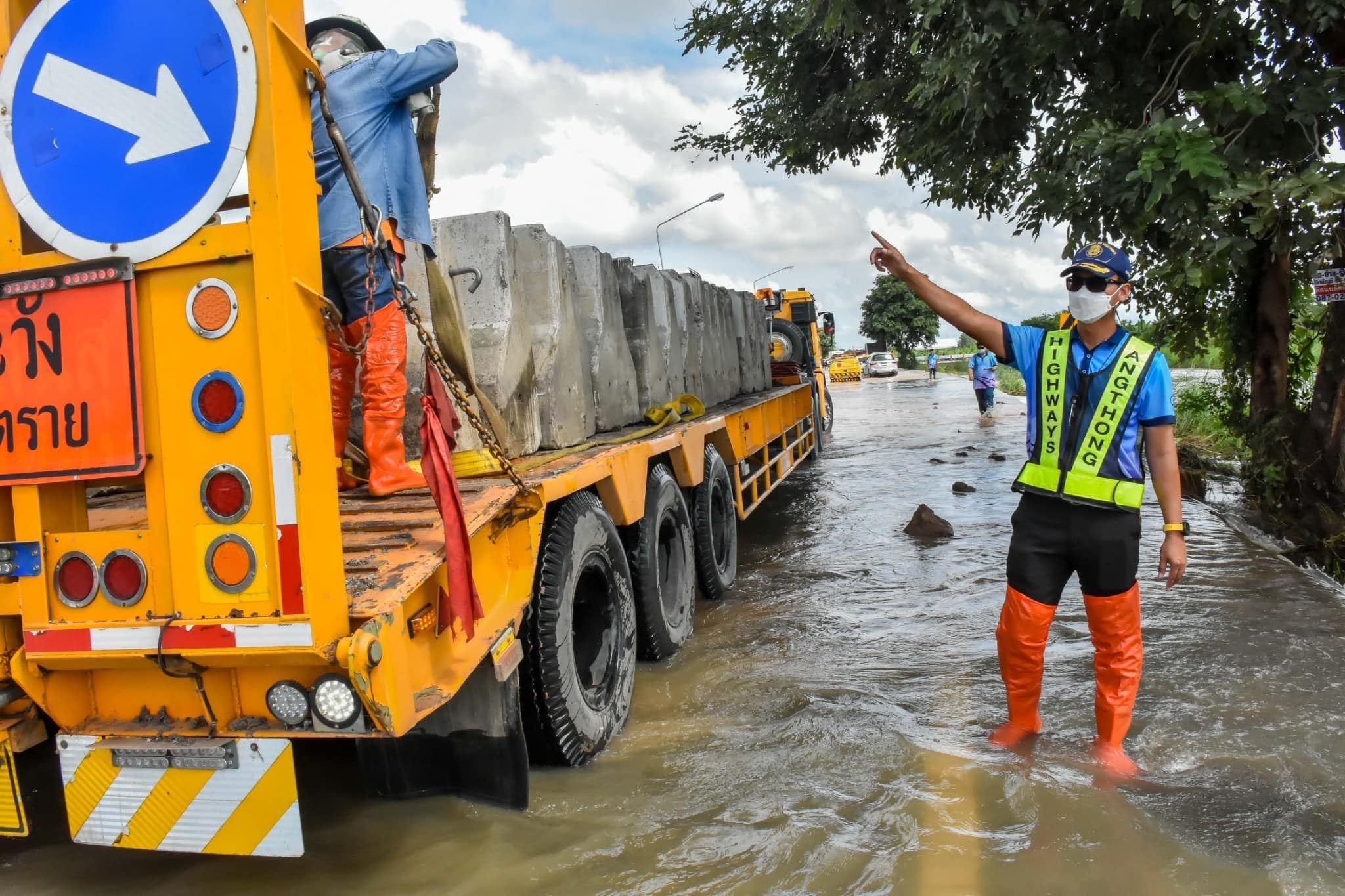 กรมทางหลวงรับนโยบายรัฐมนตรีว่าการกระทรวงคมนาคมปฏิบัติตามแผนป้องกันสาธารณภัยอย่างเคร่งครัดและติดตามข้อมูลปริมาณและทิศทางน้ำตลอด 24 ชั่วโมง เพื่อตรวจสอบเส้นทางการสัญจรที่จะได้รับผลกระทบ รวมทั้งวางแผนการดำเนินงานและการบริหารจัดการ จัดหาเส้นทางเลี่ยงและประชาสัมพันธ์ข้อมูลให้ประชาชนทราบล่วงหน้า และจัดเจ้าหน้าที่ดูแลความปลอดภัยให้กับประชาชนด้านการจราจรบน พร้อมตั้งจุดให้บริการประชาชน จัดเจ้าหน้าที่ รถ Mobile Service และรถบรรทุกช่วยเหลือประชาชน แจกถุงยังชีพและช่วยทำความสะอาดบ้านเรือนและสนับสนุนเครื่องมือเครื่องจักร ยานพาหนะ กรณีมีการร้องขอจากหน่วยงานอื่นๆ หรือประชาชนเพื่อเป็นการบรรเทาทุกข์ให้กับประชาชน
