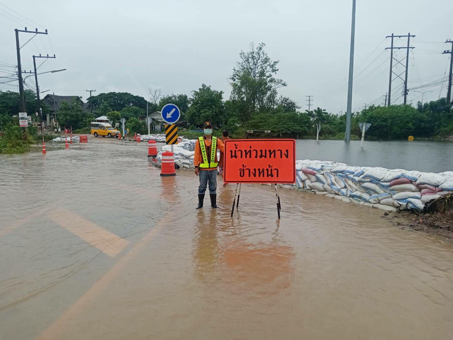 - ทล. 3263 อยุธยา – ไผ่กองดิน ช่วง กม.ที่ 10+940 (จุดกลับรถใต้สะพานสีกุก) ระดับน้ำสูง 165 ซม. ใช้ทางกลับรถข้างหน้าแทน