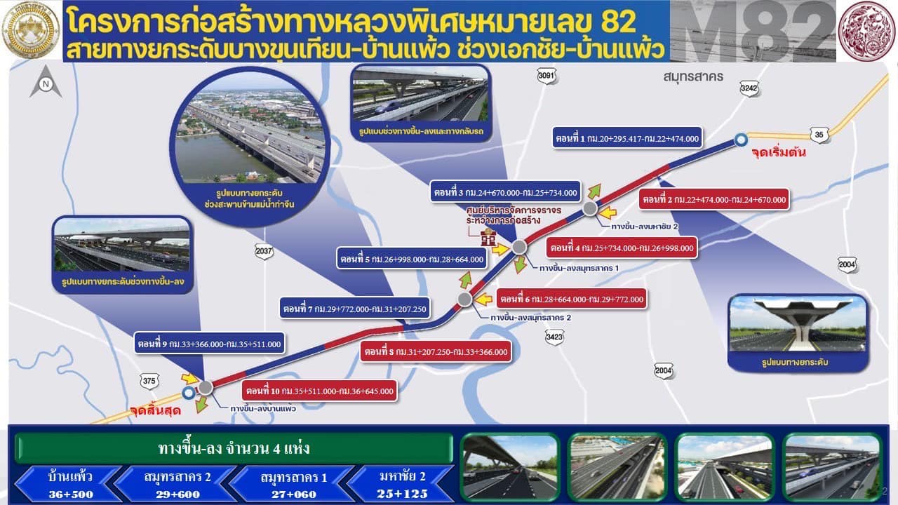ข้อมูลข่าว : นายศักดิ์สยาม ชิดชอบ รัฐมนตรีว่าการกระทรวงคมนาคม ลงพื้นที่ติดตามความคืบหน้าโครงการก่อสร้างทางยกระดับบนทางหลวงหมายเลข 35 ตอน ทางแยกต่างระดับบางขุนเทียน - เอกชัย และโครงการก่อสร้างทางหลวงพิเศษหมายเลข 82 ช่วง เอกชัย - บ้านแพ้ว