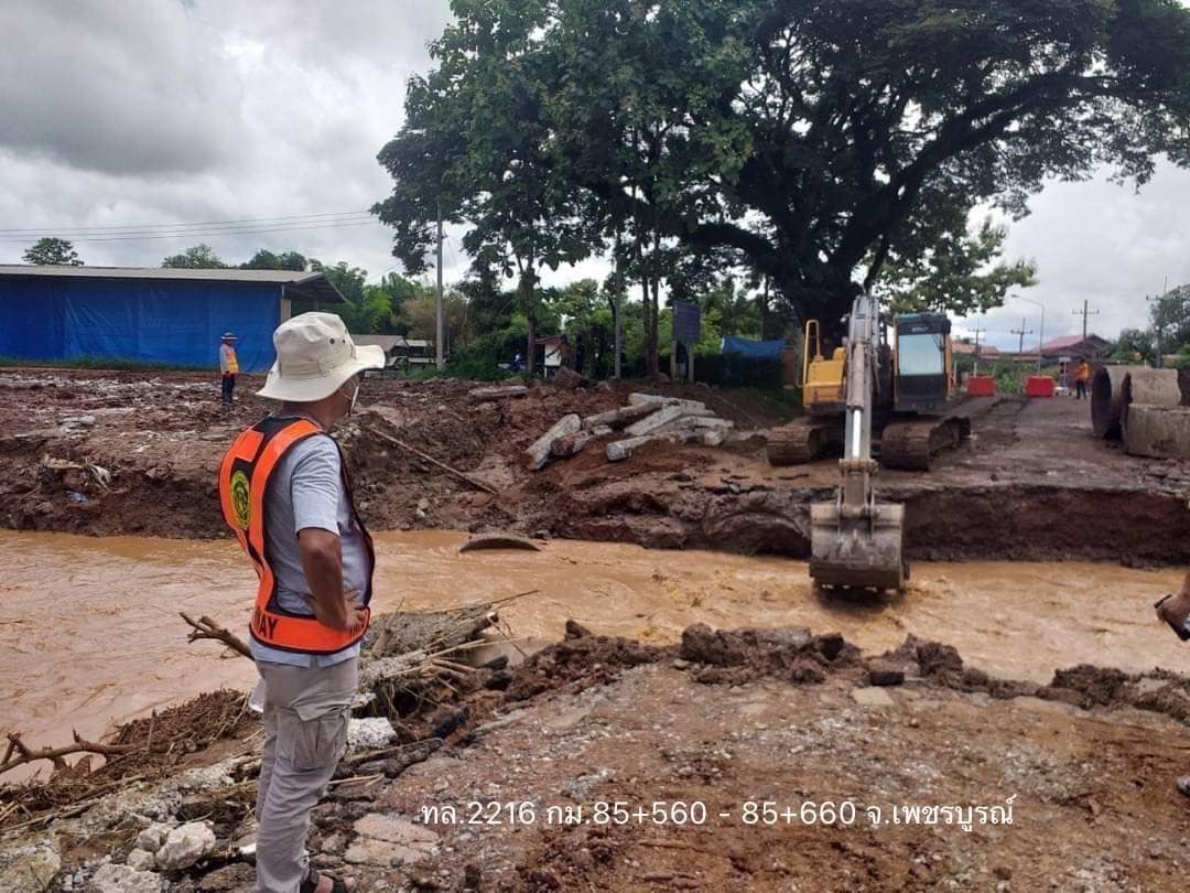 นายสราวุธ ทรงศิวิไล อธิบดีกรมทางหลวง เปิดเผยว่า นายศักดิ์สยาม ชิดชอบ รัฐมนตรีว่าการกระทรวงคมนาคมมีความเป็นห่วงต่อการเดินทางของประชาชนจึงมอบให้กรมทางหลวงเร่งดำเนินการซ่อมแซมทางเบี่ยงงานก่อสร้างสะพานห้วยน้ำย่าบนทางหลวงหมายเลข 2216 ตอน โคกมน - กกกะทอน ที่ กม.85+560 ต.ศิลา อ.หล่มเก่า จ.เพชรบูรณ์ จากสถานการณ์ฝนตกหนักต่อเนื่องหลายวันประกอบกับน้ำป่าไหลหลากและกระแสน้ำได้กัดเซาะทางเบี่ยงขาดความกว้าง 10 เมตร เมื่อวันที่ 13 กรกฎาคม 2565 ที่ผ่านมา ส่งผลให้ประชาชนผู้ใช้ทางไม่สามารถสัญจรผ่านได้ ซึ่งขณะนี้กรมทางหลวง โดยแขวงทางหลวงเพชรบูรณ์ที่ 1 ได้ดำเนินการนำเครื่องจักรเข้าซ่อมแซมทางเบี่ยงแล้วเสร็จ ในช่วงเช้าของวันนี้ (15 กรกฎาคม 2565) สามารถเปิดการจราจรให้รถขนาดเล็กสามารถผ่านได้ สำหรับรถขนาดใหญ่ขอให้ใช้เส้นทางเลี่ยงทางหลวงชนบท ทช.2012 บ้านตาดกลอย-หนองยาวแทน พร้อมได้สั่งการให้หน่วยในพื้นที่ได้ดำเนินการติดตั้งป้ายเตือน กรวยยาง ไฟกระพริบเตือน พร้อมจัดเจ้าหน้าที่อำนวยความสะดวกและประชาสัมพันธ์เพื่ออำนวยความสะดวกปลอดภัยให้กับประชาชนผู้ใช้เส้นทาง