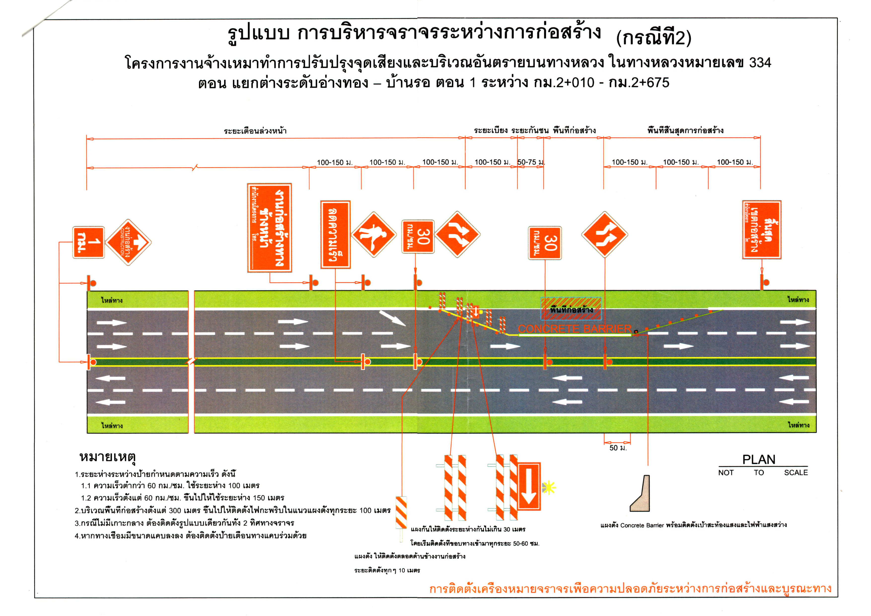 แขวงทางหลวงอ่างทอง ได้รับงบประมาณในการปรับปรุงจุดเสี่ยงบริเวณหน้าโรงเรียนอ่างทองปัทมโรจน์วิทยาคม บนทางหลวงหมายเลข 334 ตอนควบคุม 0100 ตอน แยกต่างระดับอ่างทอง – บ้านรอ ระหว่าง กม. 2+010 – กม.2+675 จำนวน 1 แห่ง ตามสัญญาจ้างเลขที่ อท.20/2562 ลงวันที่ 14 กุมภาพันธ์ 2562 เริ่มสัญญาวันที่ 15 กุมภาพันธ์ 2562 และสิ้นสุดสัญญาวันที่ 11 ธันวาคม 2562 ระยะเวลาดำเนินการ 300 วัน โดยมี บริษัท สองฝั่งการเกษตร จำกัด เป็นผู้รับจ้าง ขณะนี้ อยู่ระหว่างดำเนินการก่อสร้างฯ จึงมีความจำเป็นต้องดำเนินการเบี่ยงการจราจรในระหว่างการก่อสร้าง โดยจะเริ่มดำเนินการ วันที่ 30 กรกฎาคม 2562 เป็นต้นไป จนกว่าโครงการจะแล้วเสร็จ จึงต้องขออภัยในความไม่สะดวกกับผู้ใช้เส้นทาง