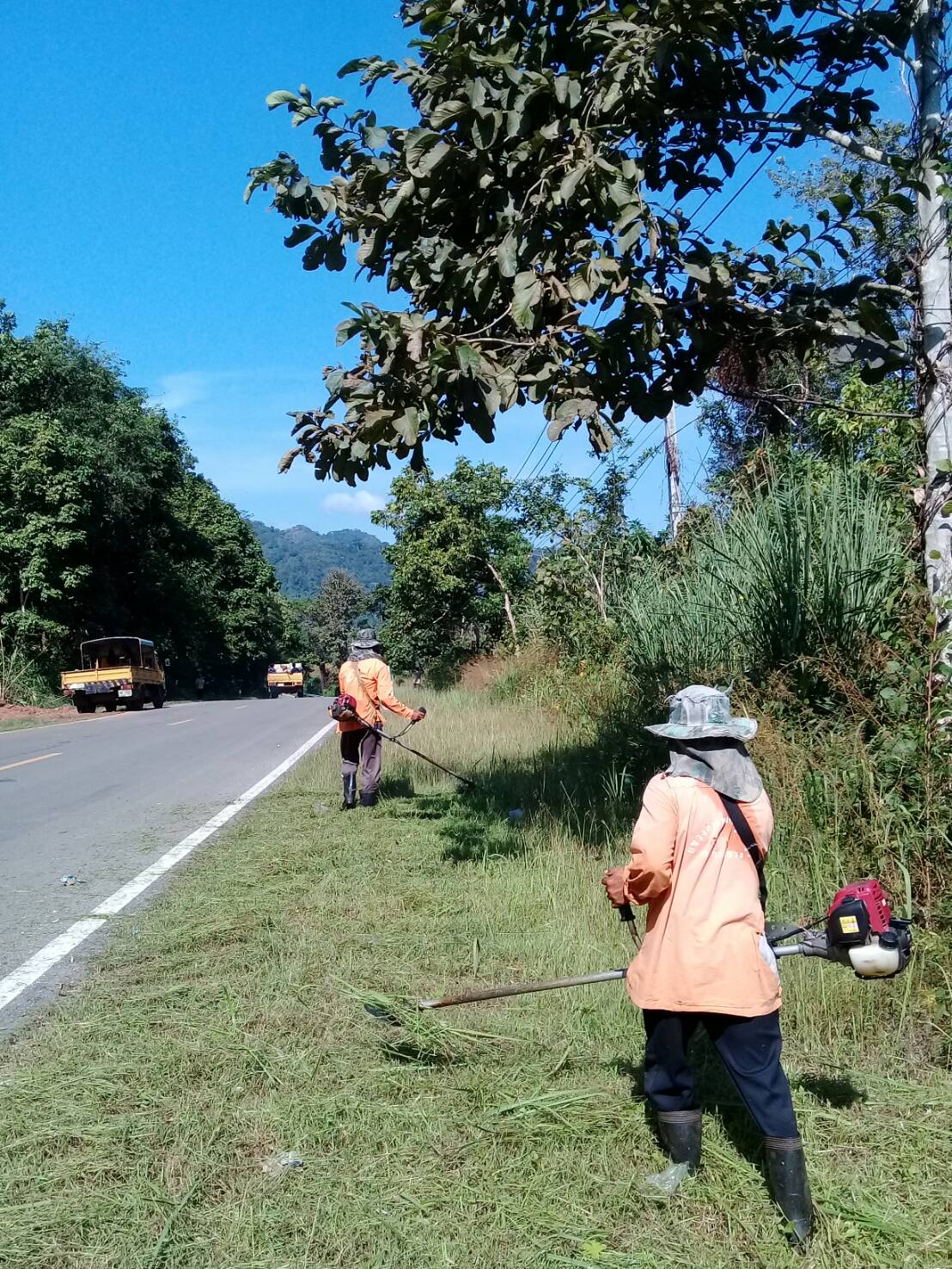 แขวงทางหลวงกาญจนบุรีโดยหมวดด่านมะขามเตี้ยดำเนินการในทางหลวงหมายเลข 3209 23/11/61