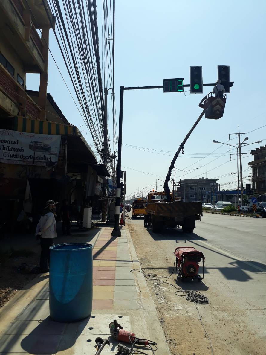 แขวงทางหลวงกาญจนบุรีตรวจสอบไฟสัญญาณดับแยกท่ามะกา(หวายเนียว) ทล.323 ตอนลูกแก-ท่าเรือ 26/11/61