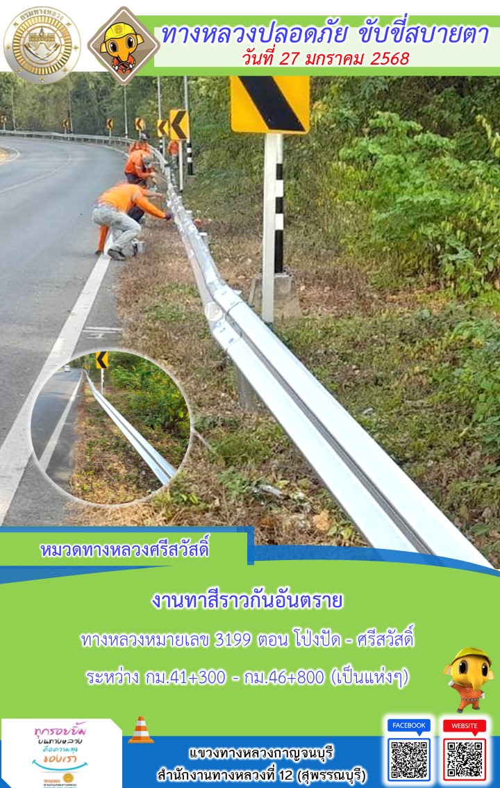 แขวงทางหลวงกาญจนบุรี โดยหมวดทางหลวงในสังกัด และงานอำนวยความปลอดภัยปฏิบัติงาน ประจำวันที่ 27 ม.ค. 68