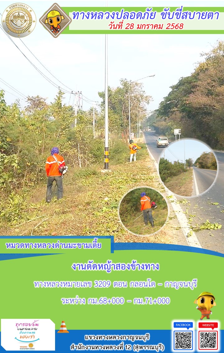 แขวงทางหลวงกาญจนบุรี โดยหมวดทางหลวงในสังกัด และงานอำนวยความปลอดภัยปฏิบัติงาน ประจำวันที่ 28 ม.ค. 68