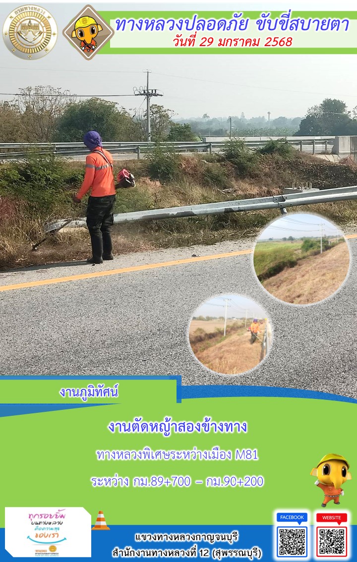 แขวงทางหลวงกาญจนบุรี โดยหมวดทางหลวงในสังกัด และงานอำนวยความปลอดภัยปฏิบัติงาน ประจำวันที่ 29 ม.ค. 68