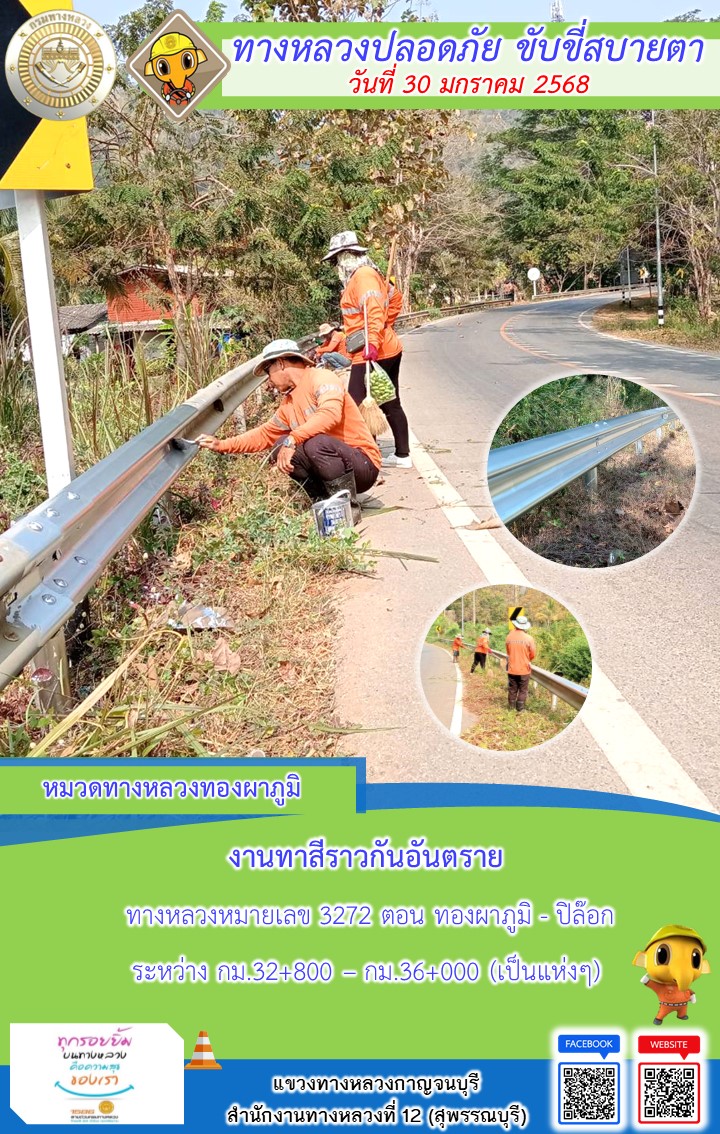 แขวงทางหลวงกาญจนบุรี โดยหมวดทางหลวงในสังกัด และงานอำนวยความปลอดภัยปฏิบัติงาน ประจำวันที่ 30 ม.ค. 68