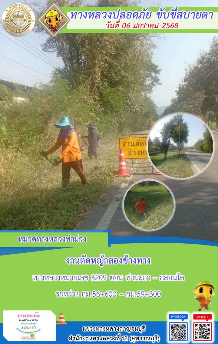 แขวงทางหลวงกาญจนบุรี โดยหมวดทางหลวงในสังกัด และงานอำนวยความปลอดภัยปฏิบัติงาน ประจำวันที่ 06 ม.ค. 68