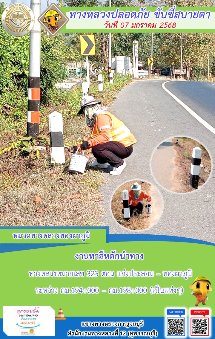 แขวงทางหลวงกาญจนบุรี โดยหมวดทางหลวงในสังกัด และงานอำนวยความปลอดภัยปฏิบัติงาน ประจำวันที่ 07 ม.ค. 68