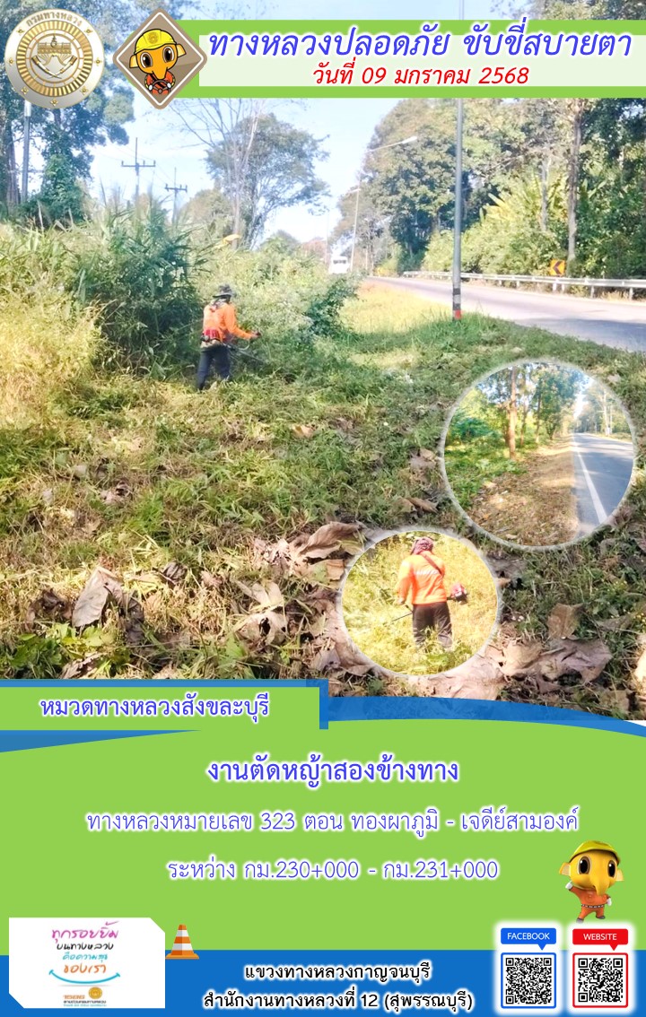 แขวงทางหลวงกาญจนบุรี โดยหมวดทางหลวงในสังกัด และงานอำนวยความปลอดภัยปฏิบัติงาน ประจำวันที่ 09 ม.ค. 68