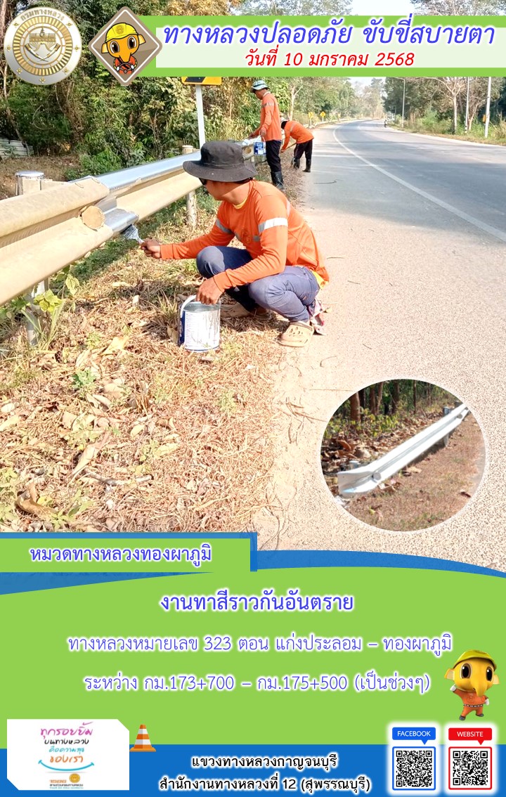 แขวงทางหลวงกาญจนบุรี โดยหมวดทางหลวงในสังกัด และงานอำนวยความปลอดภัยปฏิบัติงาน ประจำวันที่ 10 ม.ค. 68