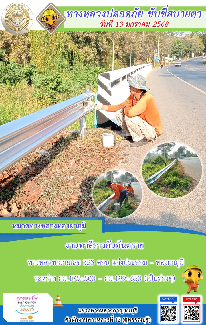 แขวงทางหลวงกาญจนบุรี โดยหมวดทางหลวงในสังกัด และงานอำนวยความปลอดภัยปฏิบัติงาน ประจำวันที่ 13 ม.ค. 68