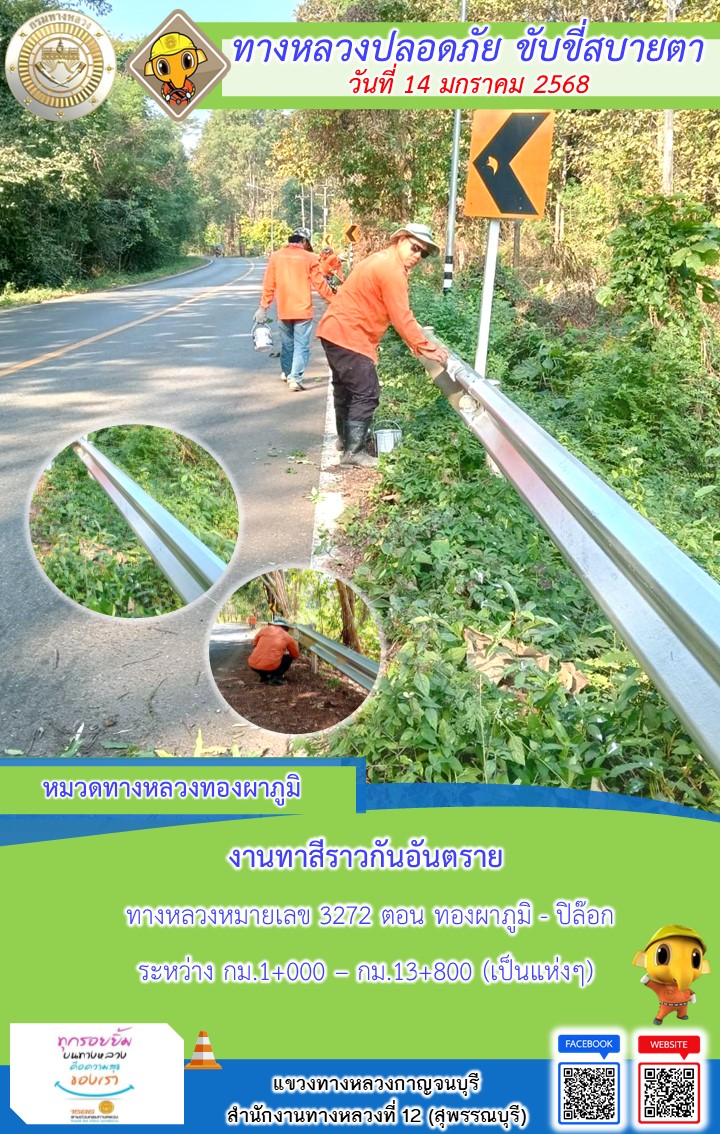 แขวงทางหลวงกาญจนบุรี โดยหมวดทางหลวงในสังกัด และงานอำนวยความปลอดภัยปฏิบัติงาน ประจำวันที่ 14 ม.ค. 68
