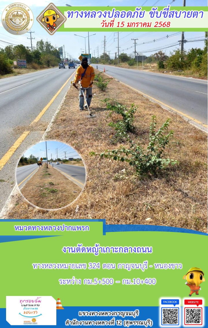 แขวงทางหลวงกาญจนบุรี โดยหมวดทางหลวงในสังกัด และงานอำนวยความปลอดภัยปฏิบัติงาน ประจำวันที่ 15 ม.ค. 68