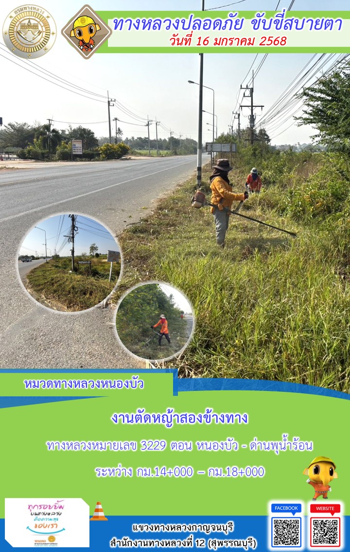 แขวงทางหลวงกาญจนบุรี โดยหมวดทางหลวงในสังกัด และงานอำนวยความปลอดภัยปฏิบัติงาน ประจำวันที่ 16 ม.ค. 68