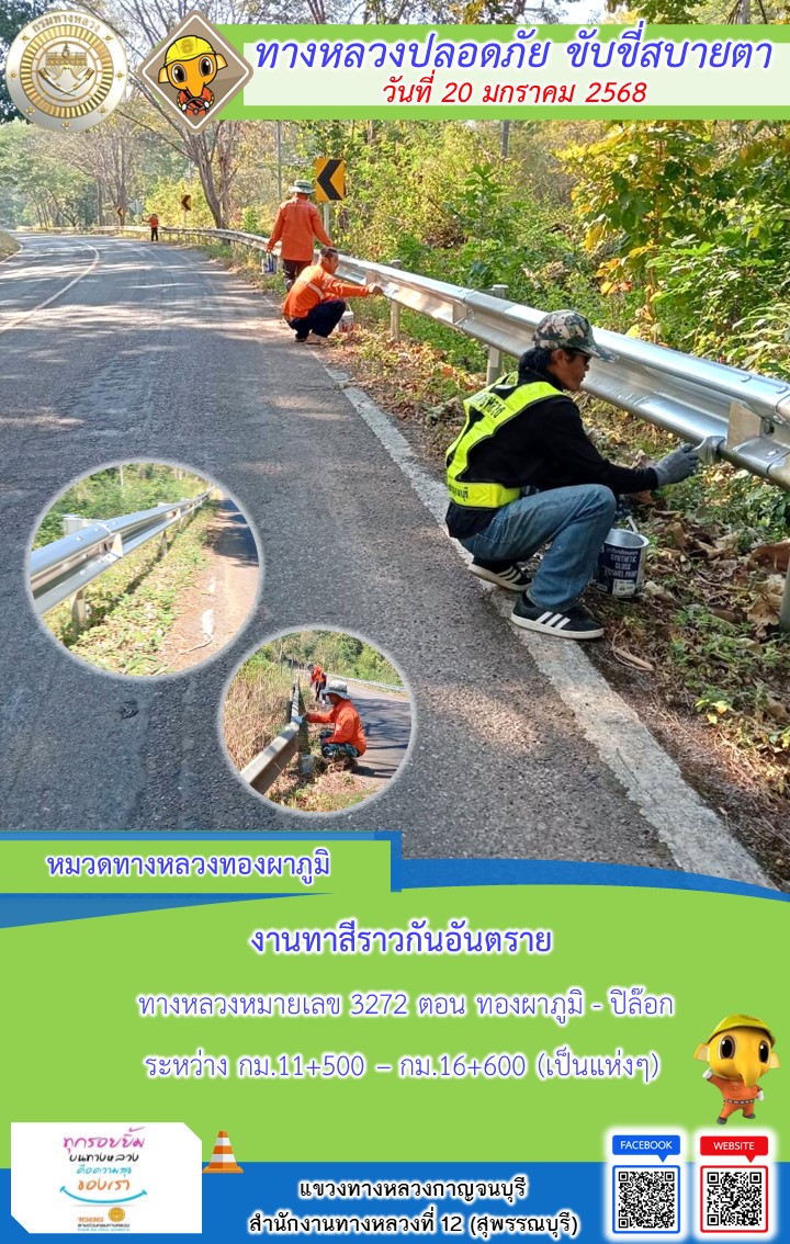 แขวงทางหลวงกาญจนบุรี โดยหมวดทางหลวงในสังกัด และงานอำนวยความปลอดภัยปฏิบัติงาน ประจำวันที่ 20 ม.ค. 68