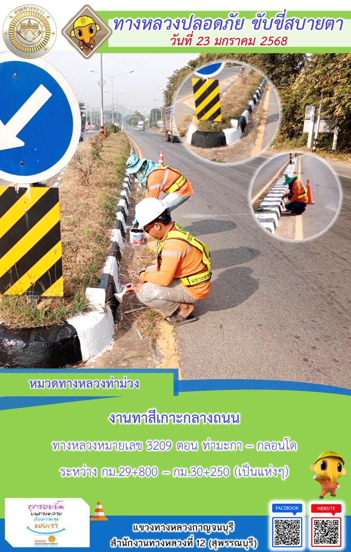 แขวงทางหลวงกาญจนบุรี โดยหมวดทางหลวงในสังกัด และงานอำนวยความปลอดภัยปฏิบัติงาน ประจำวันที่ 23 ม.ค. 68