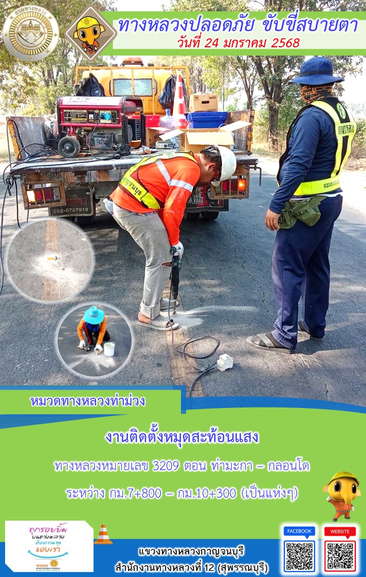 แขวงทางหลวงกาญจนบุรี โดยหมวดทางหลวงในสังกัด และงานอำนวยความปลอดภัยปฏิบัติงาน ประจำวันที่ 24 ม.ค. 68