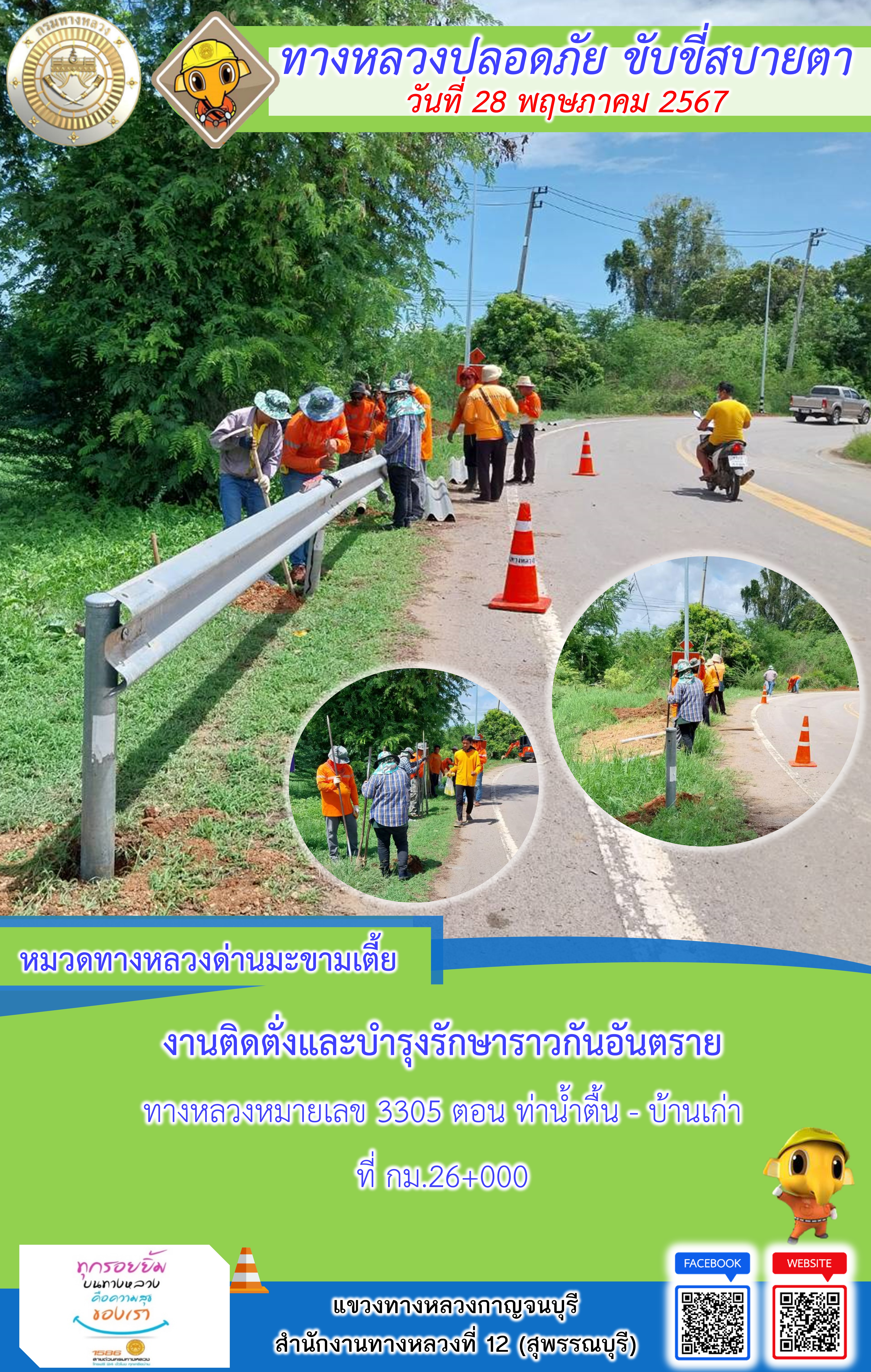 แขวงทางหลวงกาญจนบุรี โดยหมวดทางหลวงในสังกัด และงานอำนวยความปลอดภัยปฏิบัติงาน ประจำวันที่ 28 พ.ค. 67
