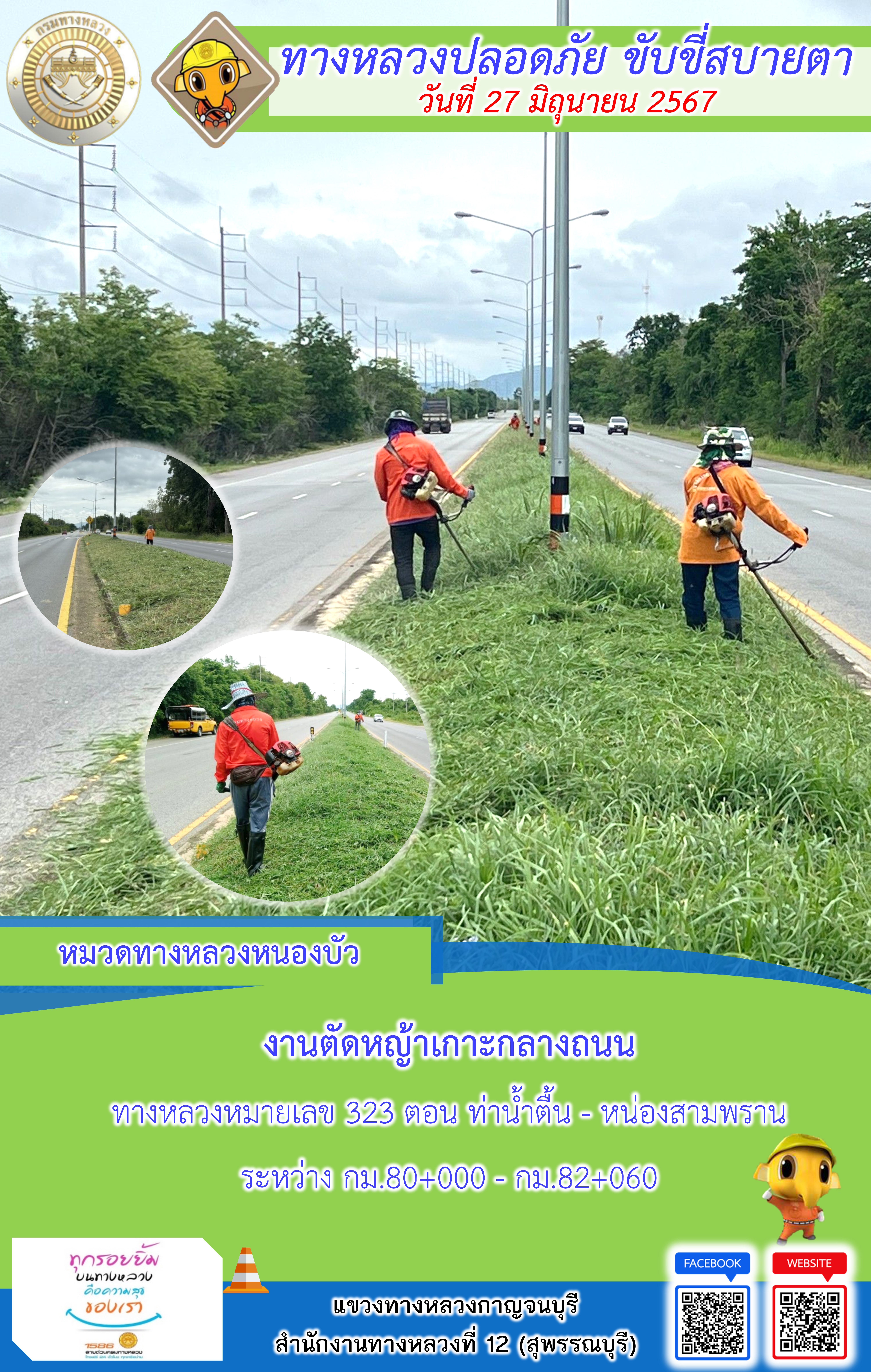 แขวงทางหลวงกาญจนบุรี โดยหมวดทางหลวงในสังกัด และงานอำนวยความปลอดภัยปฏิบัติงาน ประจำวันที่ 27 มิ.ย. 67