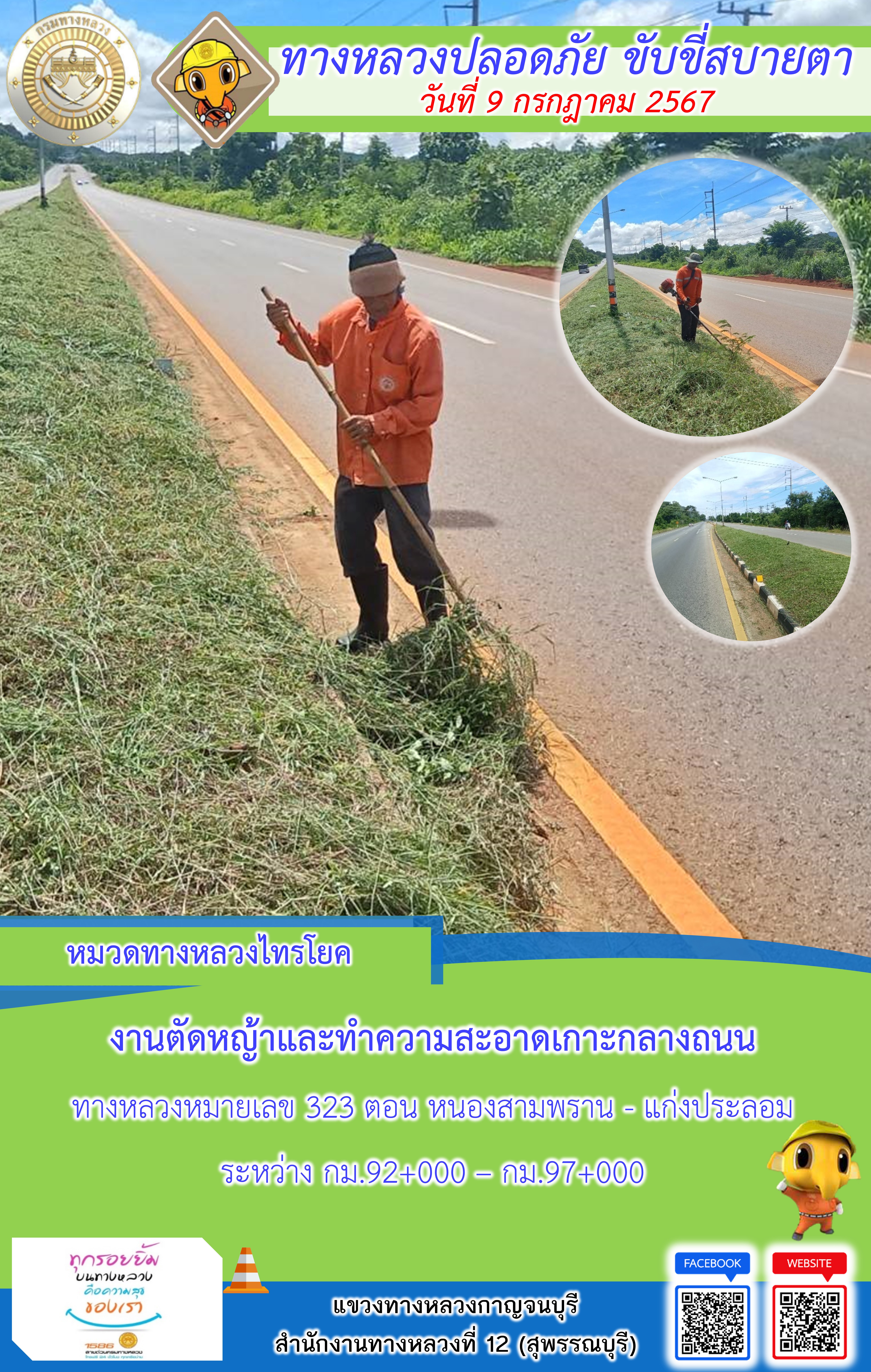 แขวงทางหลวงกาญจนบุรี โดยหมวดทางหลวงในสังกัด และงานอำนวยความปลอดภัยปฏิบัติงาน ประจำวันที่ 9 ก.ค. 67