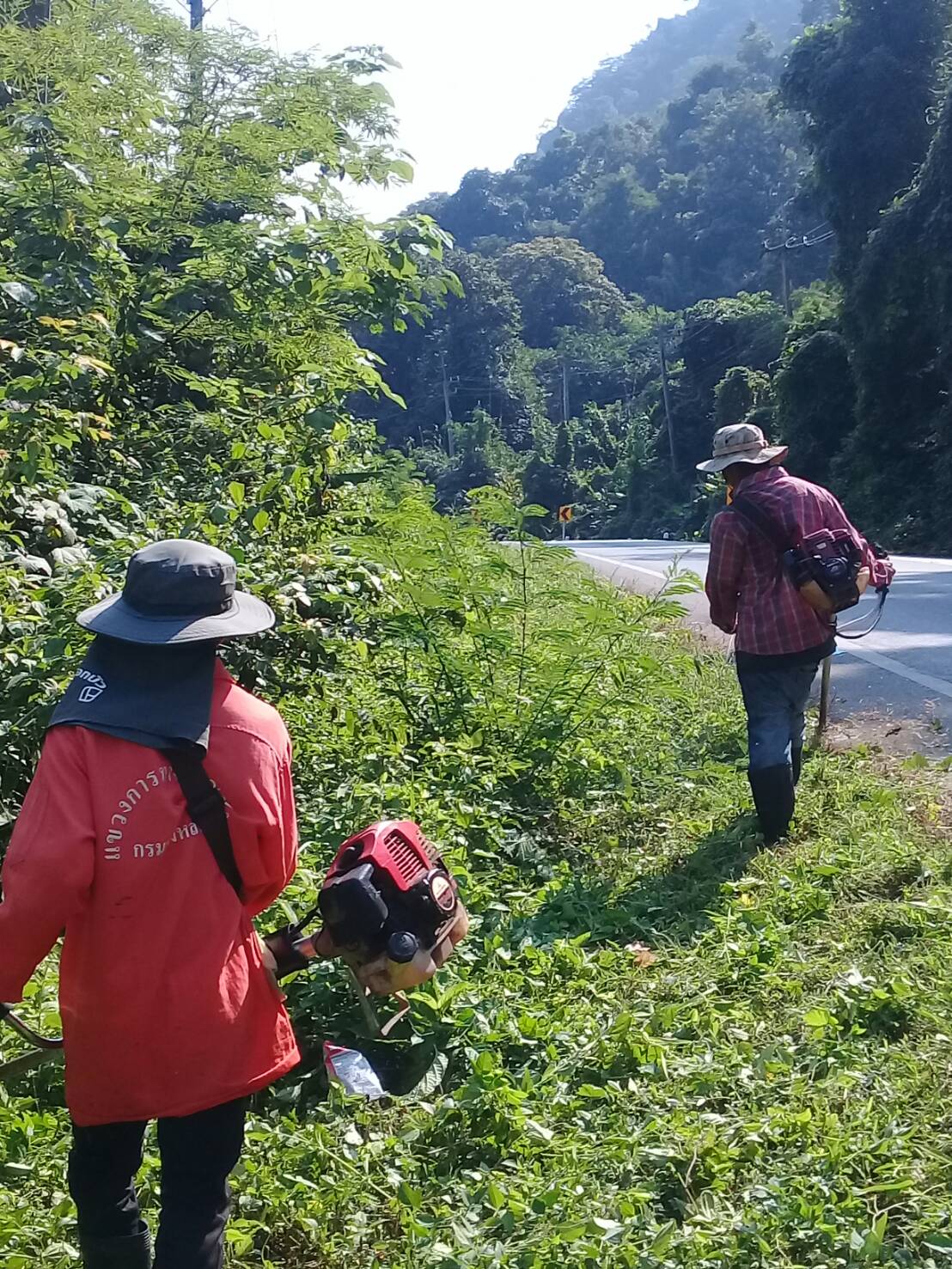 แขวงทางหลวงกาญจนบุรีโดยหมวดทางหลวงทองผาภูมิ ดำเนินการในทางหลวงหมายเลข 3230205 ผลการปฏิบัติงานประจำวันที่ 25 ต.ค. 2562