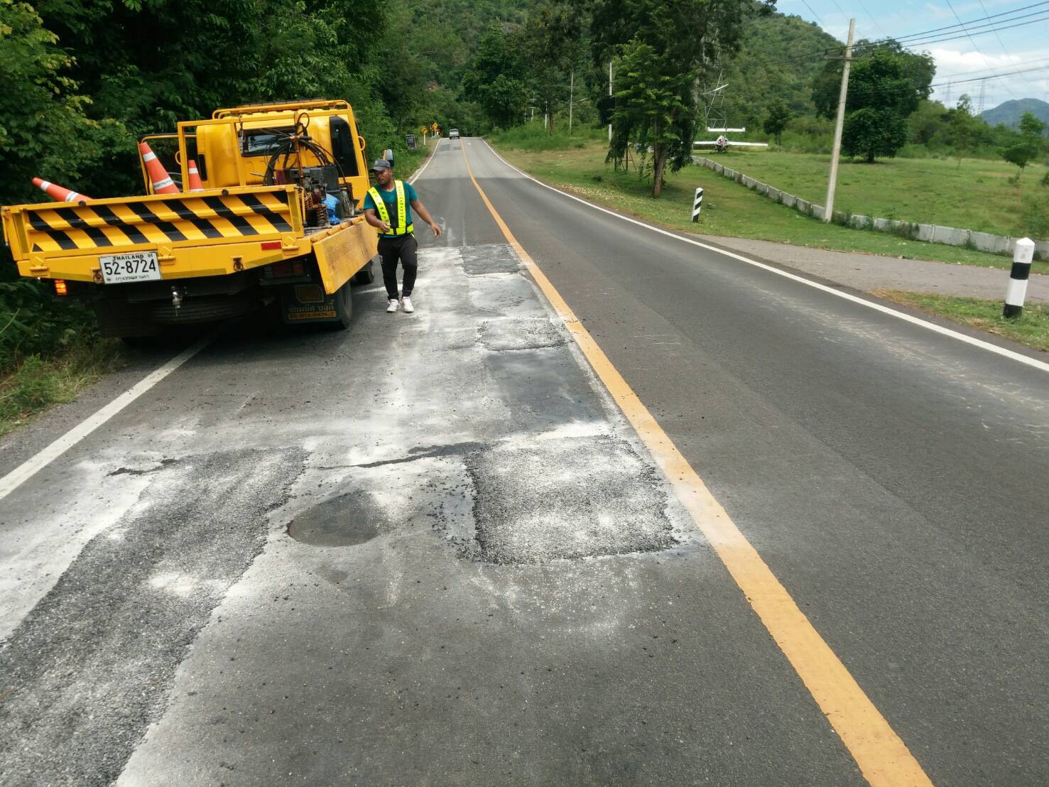 แขวงทางหลวงกาญจนบุรีโดยหมวดทางหลวงท่ามะกา ดำเนินการในทางหลวงหมายเลข 3209 ผลการปฏิบัติงานประจำวันที่ 30 กรกฎาคม 2562