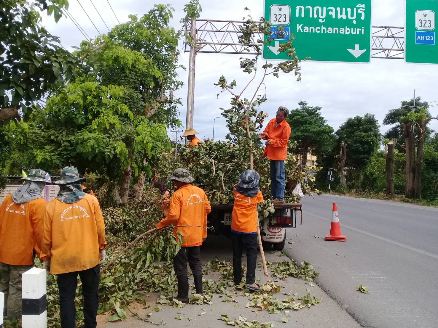แขวงทางหลวงกาญจนบุรีโดยหมวดทางหลวงทองผาภูมิ ดำเนินการในทางหลวงหมายเลข 323 ผลการปฏิบัติงานวันที่ 2 ส.ค.62