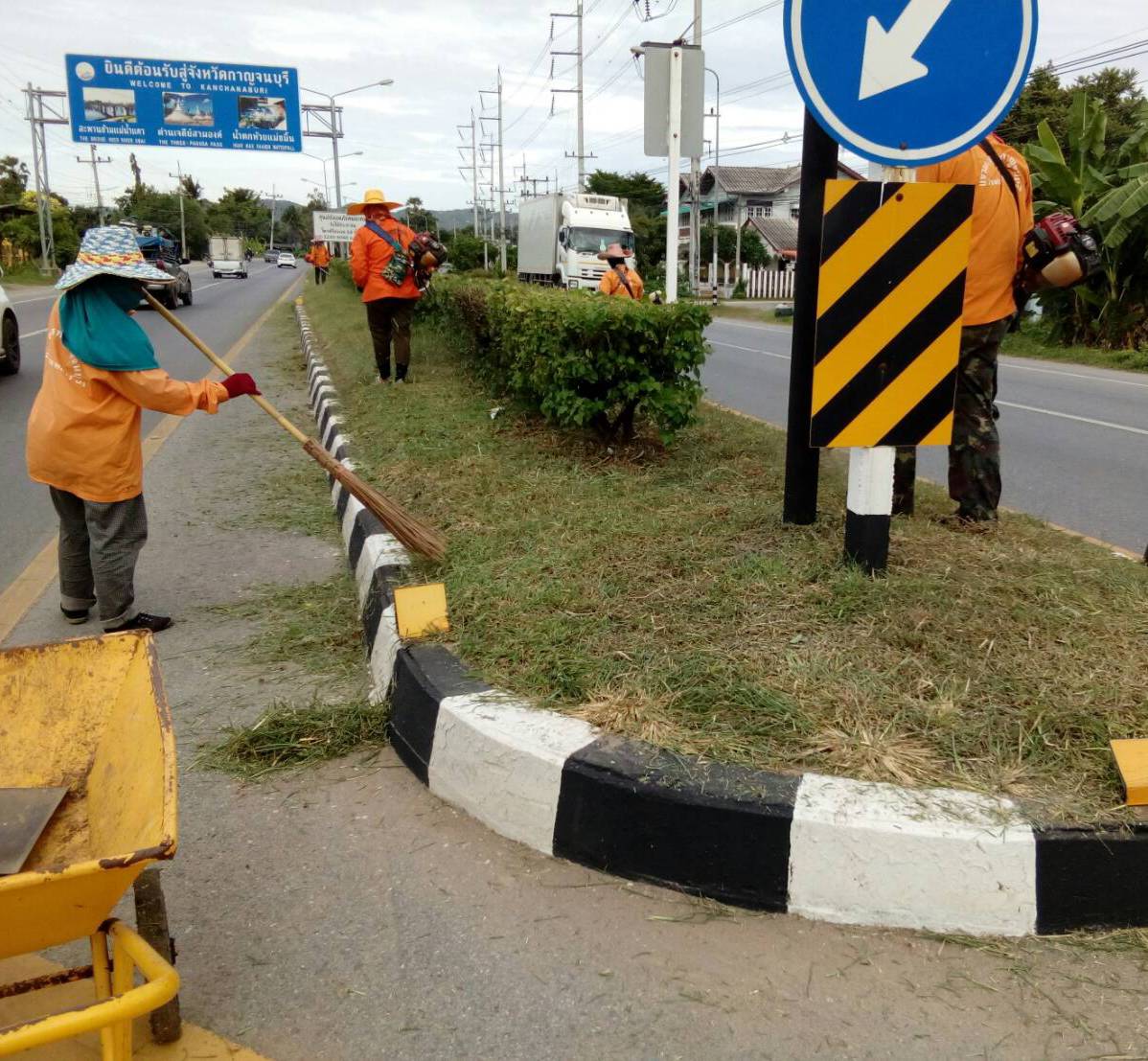 แขวงทางหลวงกาญจนบุรีโดยหมวดทางหลวงท่ามะกา ดำเนินการในทางหลวงหมายเลข 3081,323 ผลการปฏิบัติงานประจำวันที่ 12 กรกฎาคม 2562