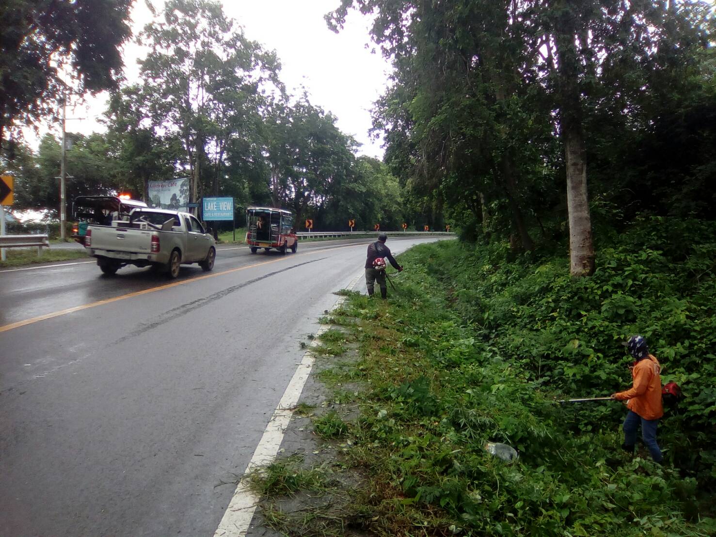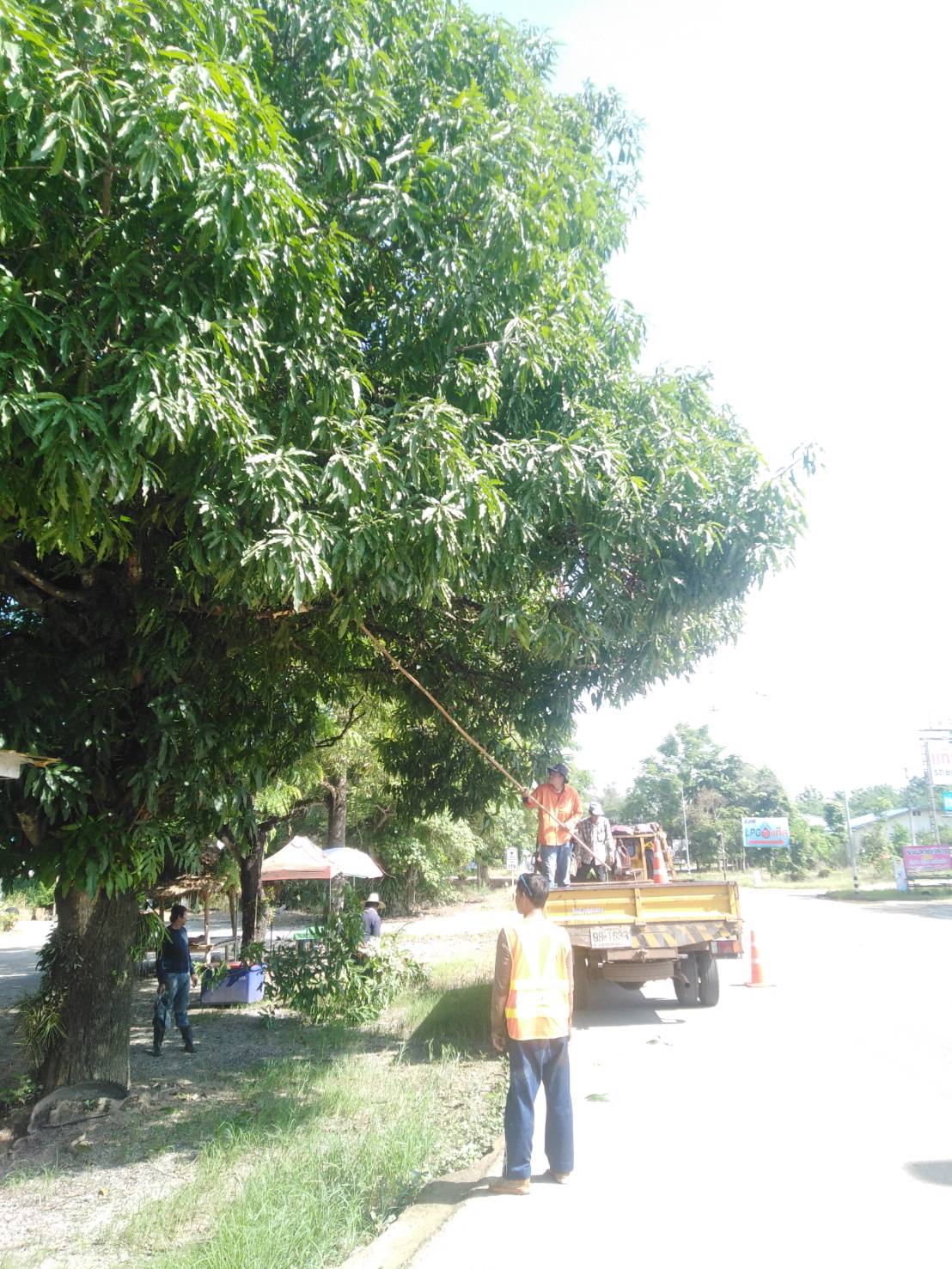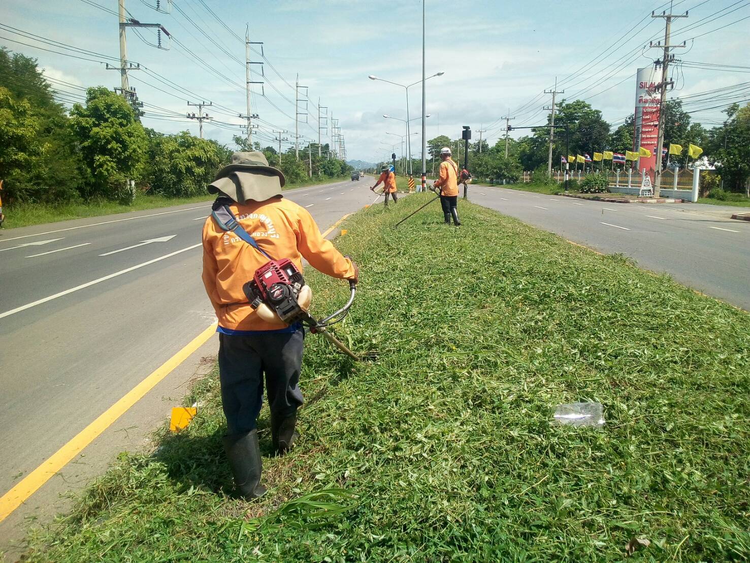 แขวงทางหลวงกาญจนบุรีโดยหมวดทางหลวงลาดหญ้า ดำเนินการในทางหลวงหมายเลข 3199 ผลการปฎิบัติงานประจำวันที่ 9 กรกฎาคม 2562