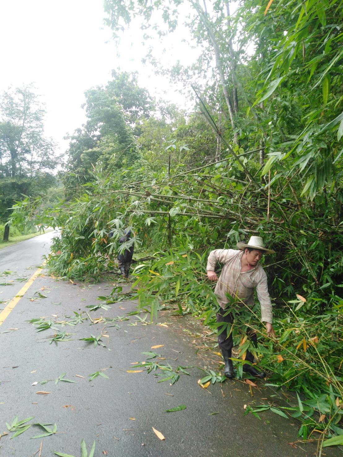 แขวงทางหลวงกาญจนบุรีโดยหมวดทางหลวงทองผาภูมิ ดำเนินการในทางหลวงหมายเลข 323,3272 ผลการปฏิบัติงานวันที่ 5 ก.ค.62