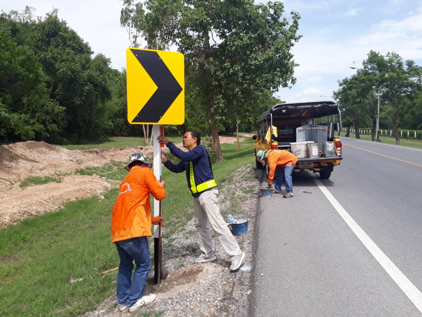 แขวงทางหลวงกาญจนบุรีโดยหมวดทางหลวงด่านมะขามเตี้ย ดำเนินการในทางหลวงหมายเลข 3209 ผลการปฎิบัติงานประจำวันที่ 3 ก.ค 62