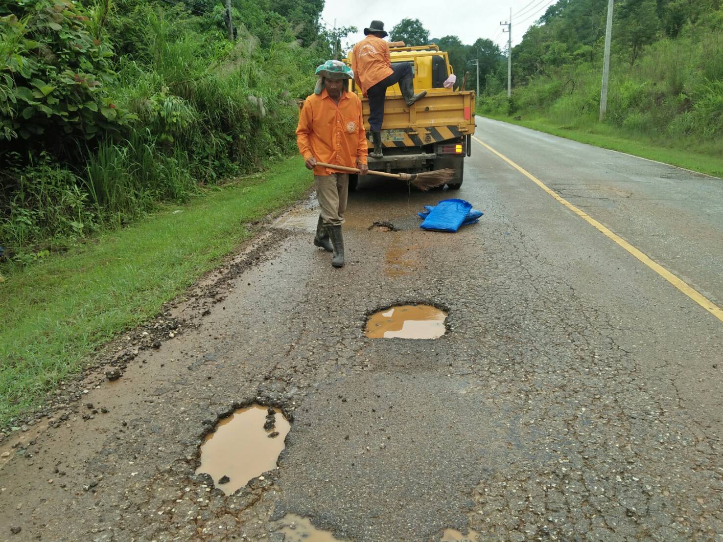 แขวงทางหลวงกาญจนบุรีโดยหมวดทางหลวงศรีสวัสดิ์ ดำเนินการในทางหลวงหมายเลข 31990103 ผลการปฎิบัติงานประจำวันที่ 2 กรกฎาคม 2562