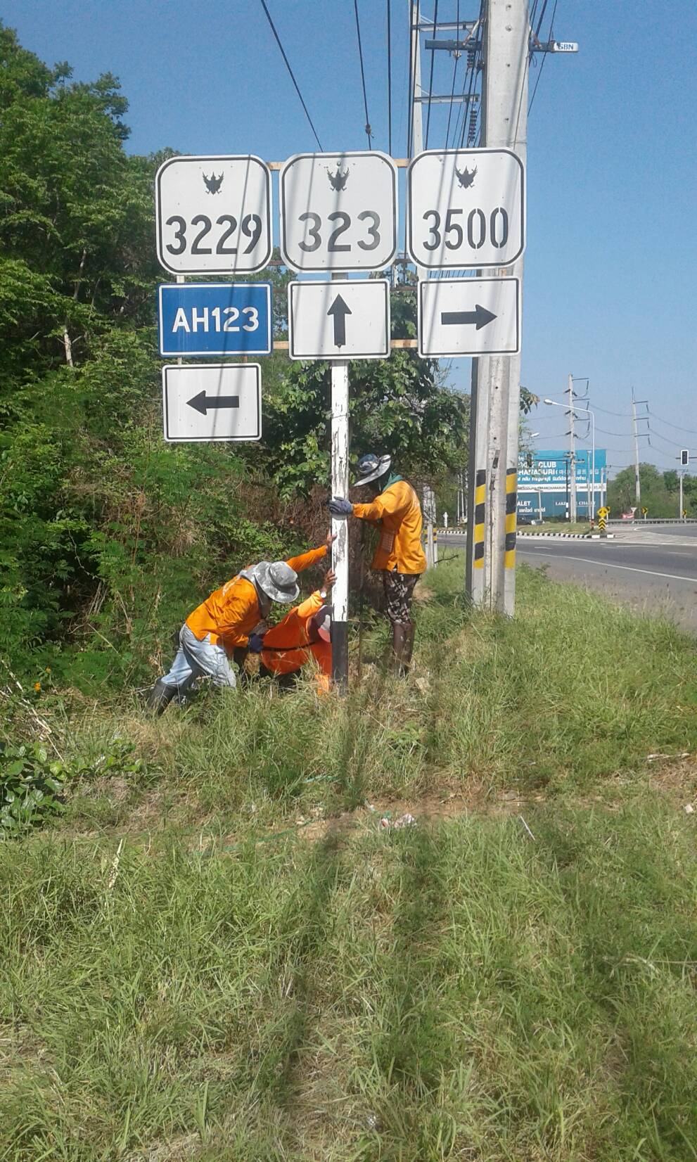 ทางหลวงกาญจนบุรีโดยหมวดทางหลวงหนองบัว ดำเนินการในทางหลวงหมายเลข 3229 ผลการปฏิบัติงานวันที่ 23 เม.ย.62