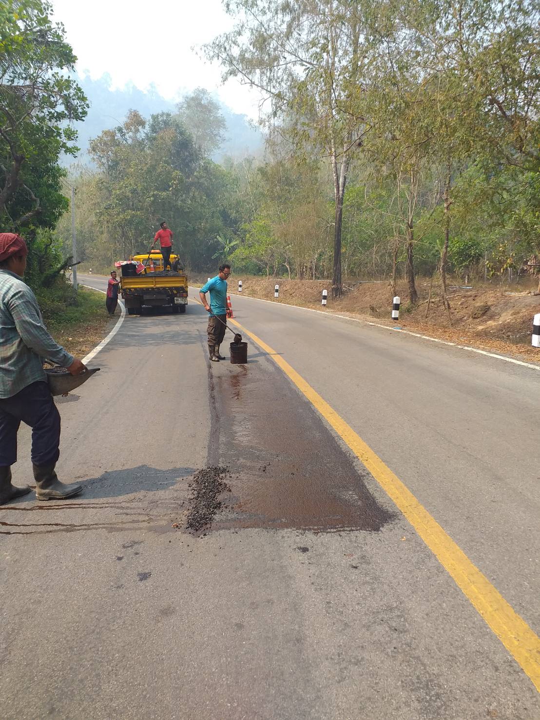 แขวงทางหลวงกาญจนบุรีโดยหมวดทางหลวงทองผาภูมิดำเนินการในทางหลวงหมายเลข 3272,323 14/03/62