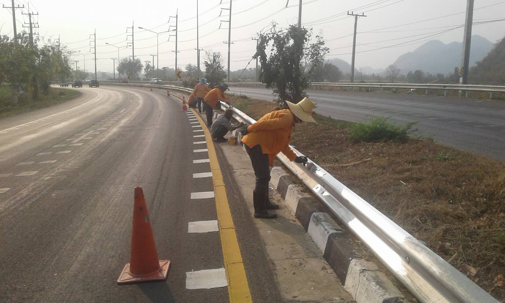 แขวงทางหลวงกาญจนบุรีโดยงานอำนวยความปลอดภัย ดำเนินการในทางหลวงหมายเลข 323 14/03/62