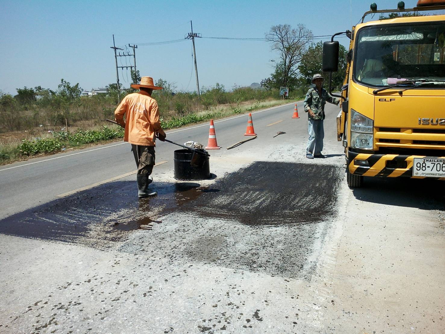 แขวงทางหลวงกาญจนบุรีโดยหมวดทางหลวงท่าม่วง ดำเนินการในทางหลวงหมายเลข 3209 06/03/62